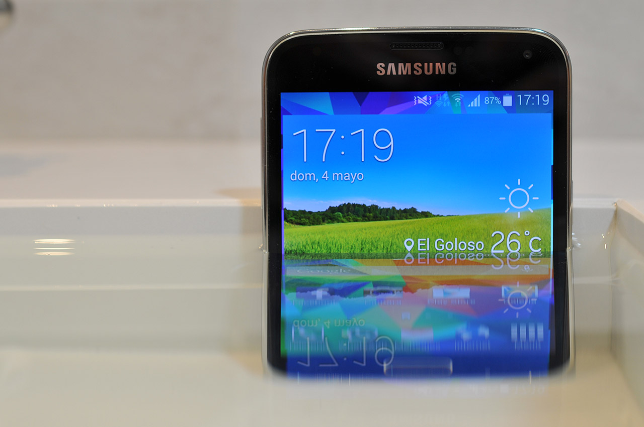 Nosotros hemos probado a darle un chapuzón y el teléfono lo ha resistido perfectamente. De hecho, podríamos pensar en utilizar el Galaxy S5 como una cámara acuática y hacer fotos debajo del agua.