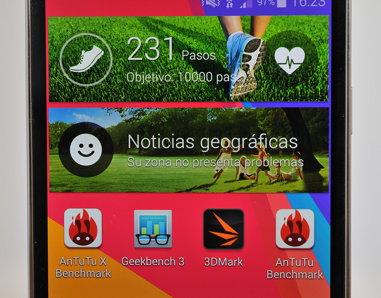 En el benchmark Geekbench ha conseguido 944/2.851 en las pruebas mono/multi-núcleo, unos resultados a la altura de los teléfonos más potentes.