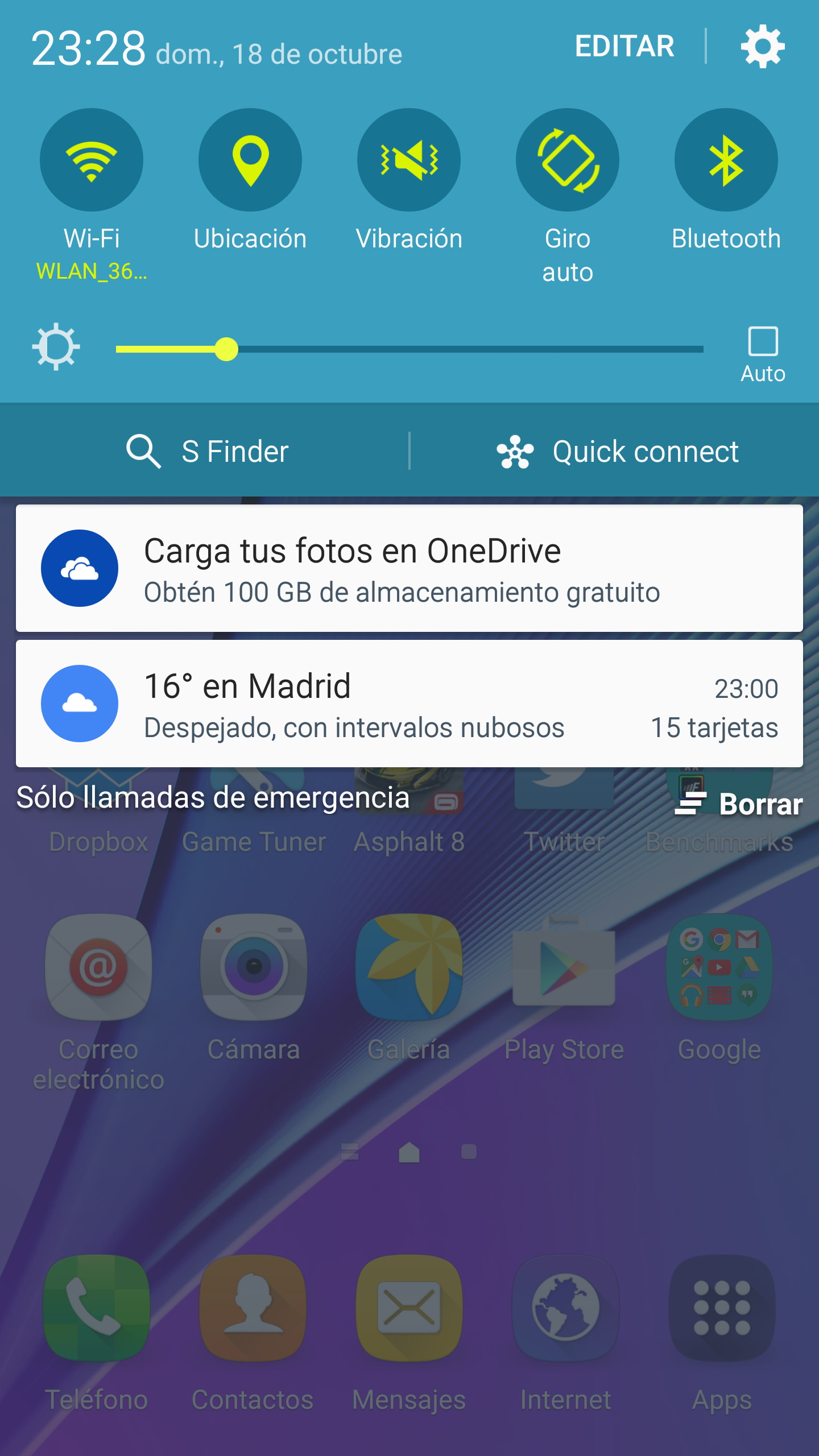 Sin embargo, al aplicar una luz brillante al sensor de iluminación, el brillo de la pantalla se incrementaba significativamente, hasta los 500 nits que hemos reportado como brillo máximo. Por lo que parece, el brillo máximo de la pantalla, aún con el ajuste automático desactivado, depende de la luz ambiente. Tras buscar por Internet, parece que muchos usuarios se están quejando de este extraño comportamiento, que también afecta al Galaxy S6 edge+.