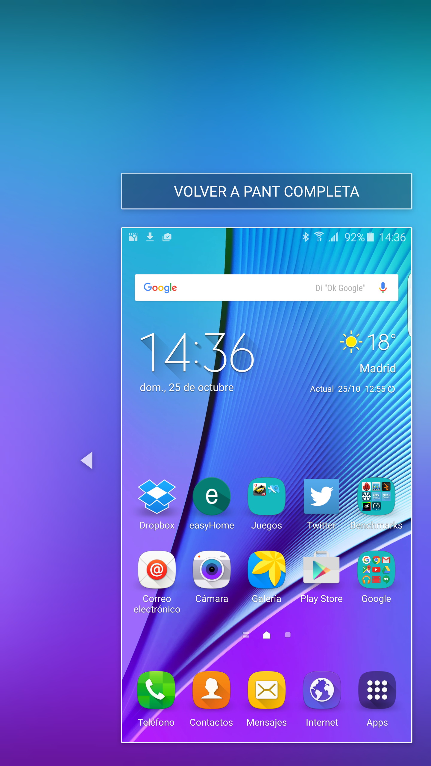 Como comentábamos anteriormente, el Galaxy S6 edge+ incorpora un modo de pantalla llamado Adaptive Screen que está activado por defecto y optimiza automáticamente la nitidez, saturación y gama de colores de la pantalla para ciertas aplicaciones como Galería, Cámara, Internet, Vídeo,y Google Play Libros.