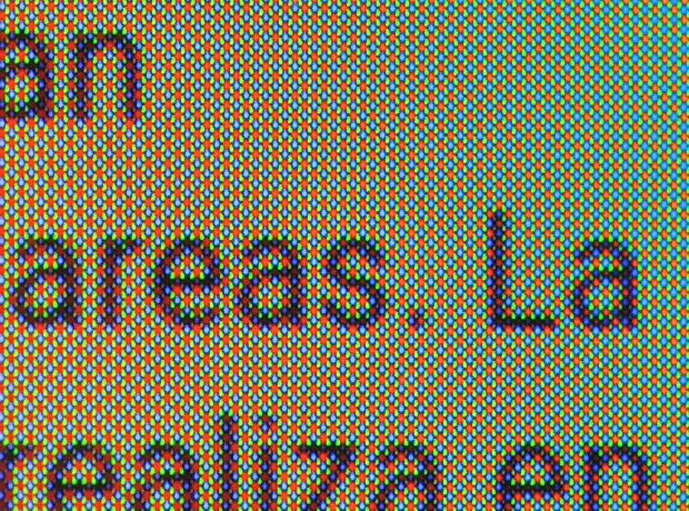 La matriz de sub-píxeles del Galaxy S6 edge+ es de tipo PenTile, como es habitual en los paneles AMOLED. En las pantallas PenTile los sub-pixeles se organizan en formas geométricas en lugar de hileras rojo-verde-azul (RGB).