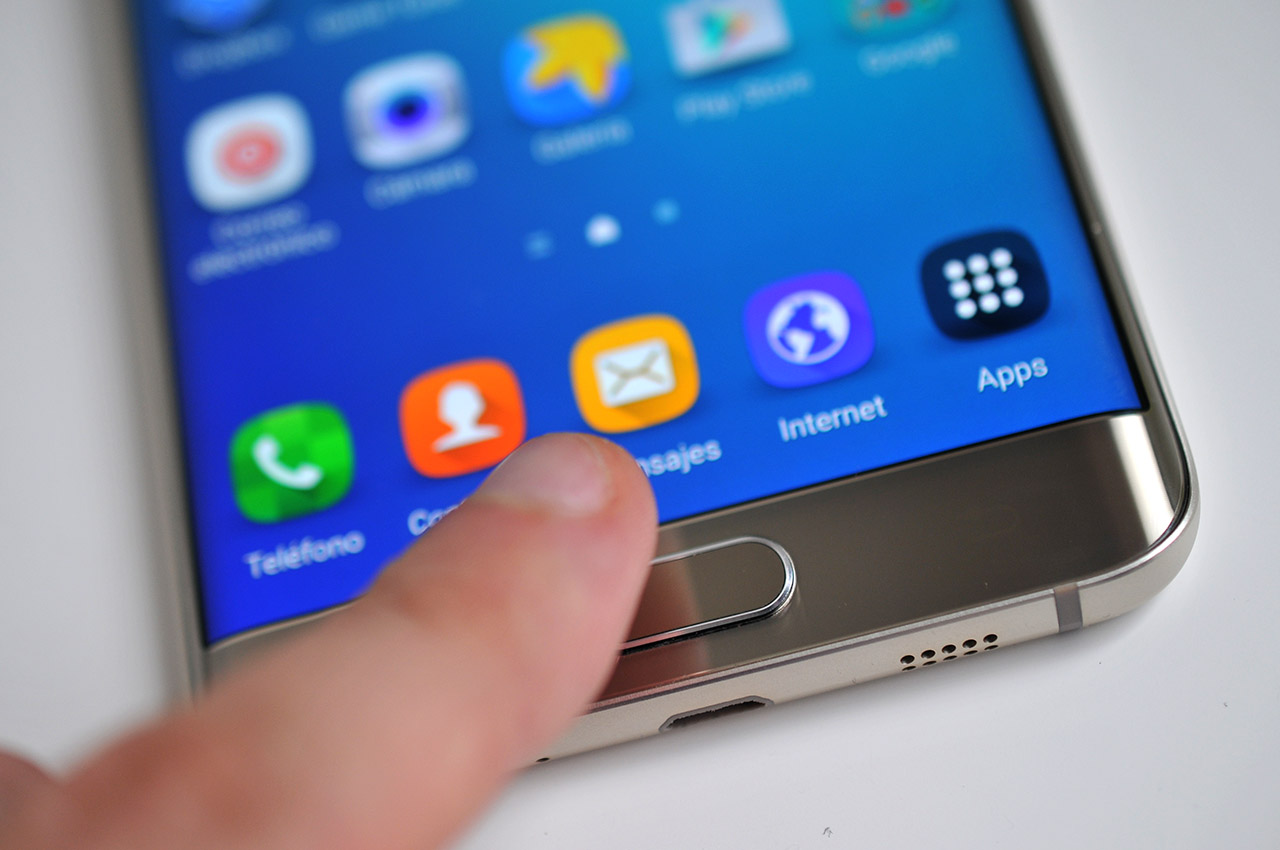 Como muchos otros teléfonos, el Galaxy S6 edge+ también incorpora un lector de huella dactilar.