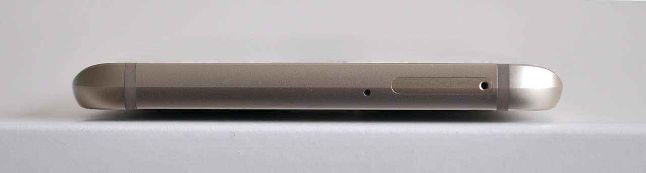 En la parte superior encontramos el compartimento de la tarjeta nano-SIM, que está perfectamente integrado con el metal y queda a ras de la superficie, no como ocurre en otros teléfonos.