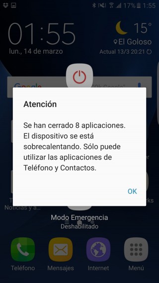 Solo en una ocasión, al ejecutar varios benchmarks seguidos, el teléfono nos avisó de que se estaba sobre-calentando e iba a cerrar tareas.