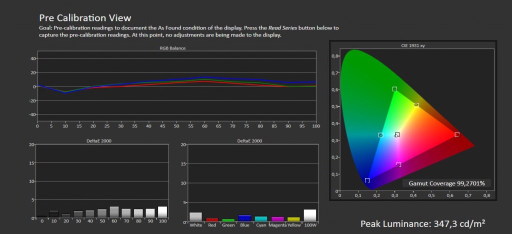 Para analizar la calidad de la pantalla hemos realizado diversas pruebas con el software profesional CalMAN Ultimate y un colorímetro X-Rite i1Display Pro.