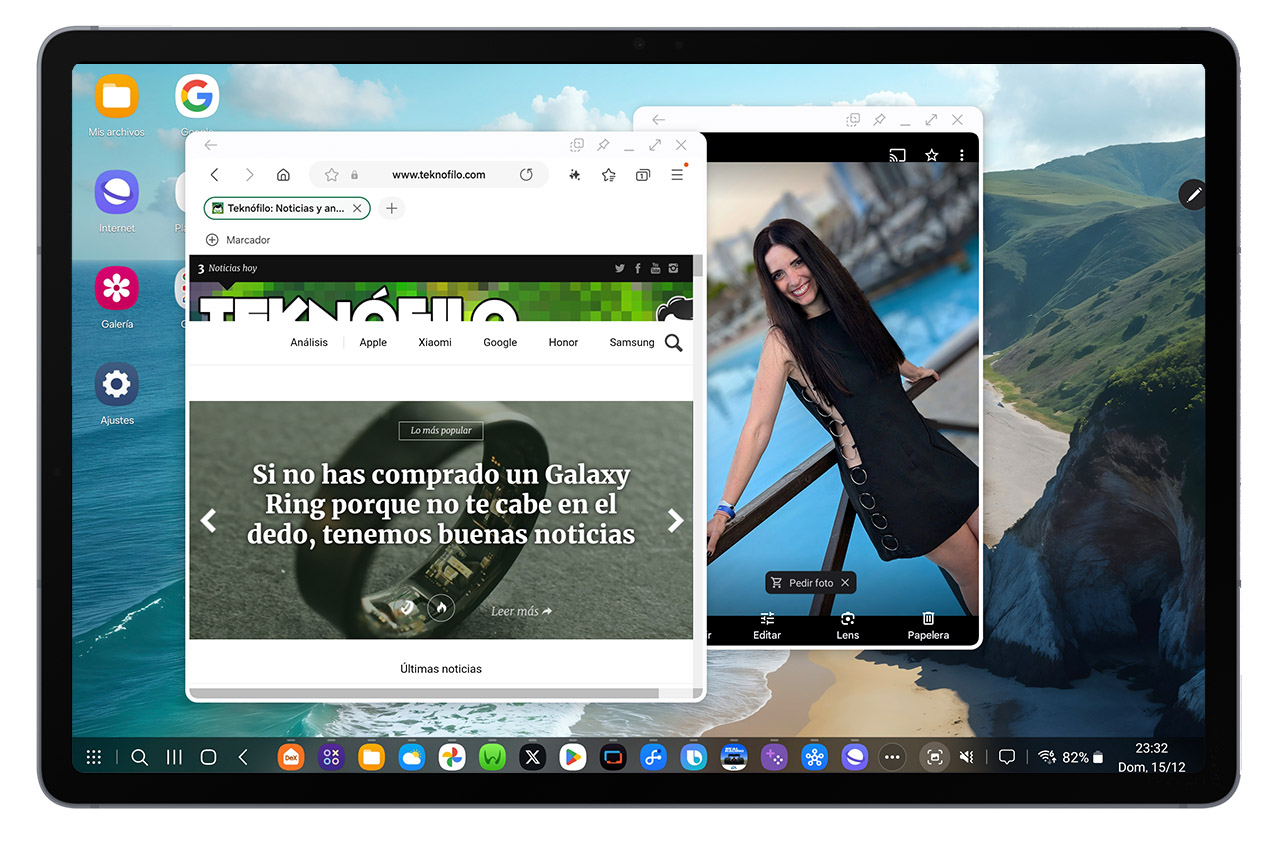 Samsung ofrece una aplicación propia llamada Galería para visualizar y reproducir las fotos y vídeos almacenados en el tablet. La aplicación también permite editar las imágenes mediante diversas funcionalidades integradas.