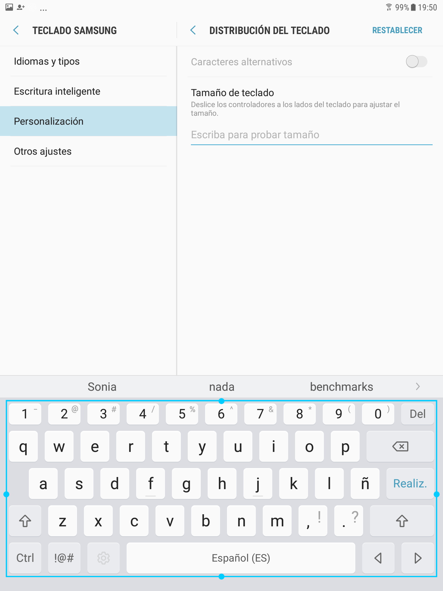 Escribir sobre el Galaxy Tab S3 es bastante cómodo ya que es posible escribir letras de pequeño tamaño.
