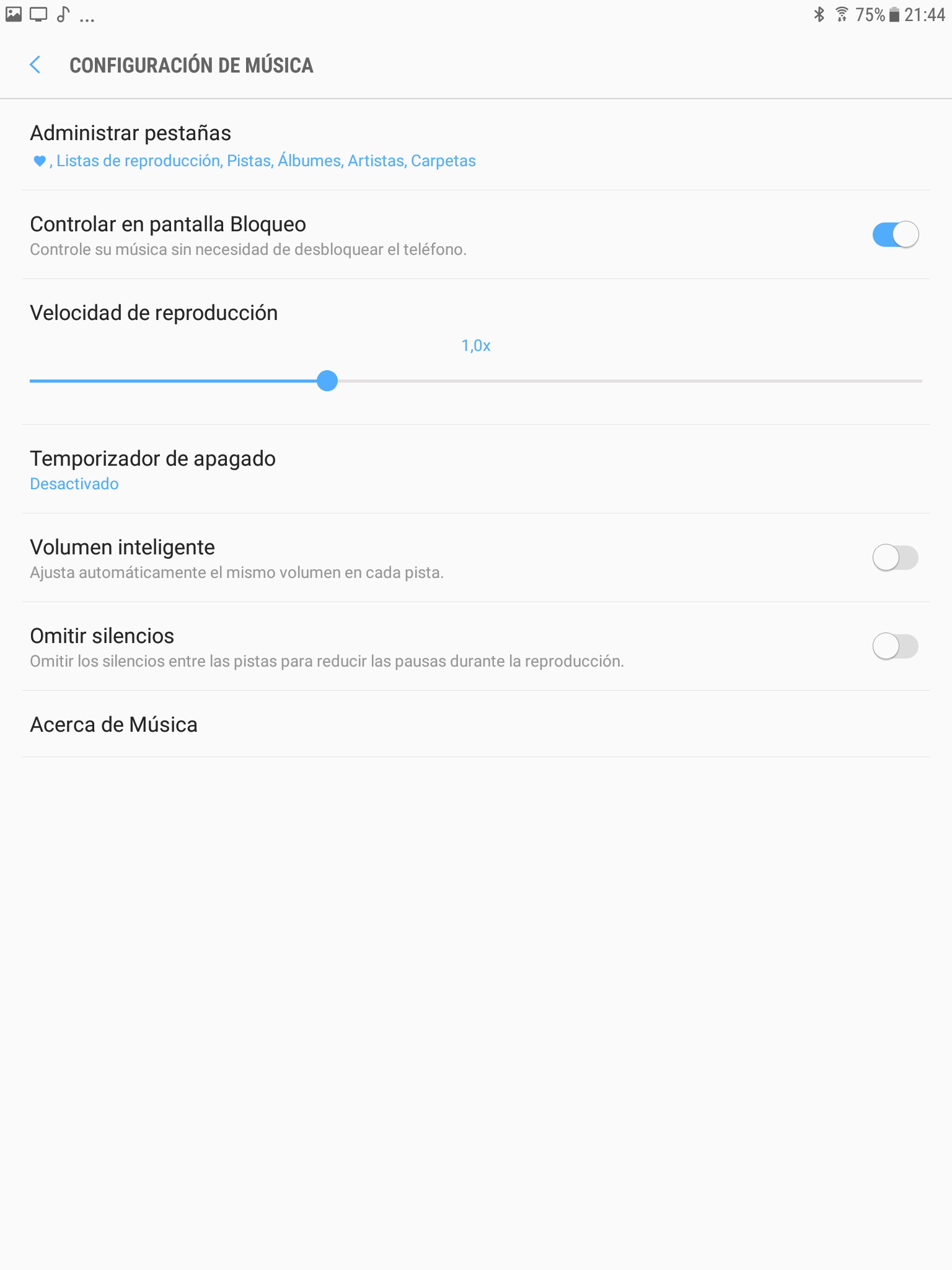 Samsung ha optado por no incorporar su propio reproductor de música sino que ha recurrido a Play Música, el reproductor de Google. Play Música permite organizar nuestras canciones por géneros, artistas, álbumes y títulos, y ofrece un servicio de suscripción de música en streaming similar a Spotify.