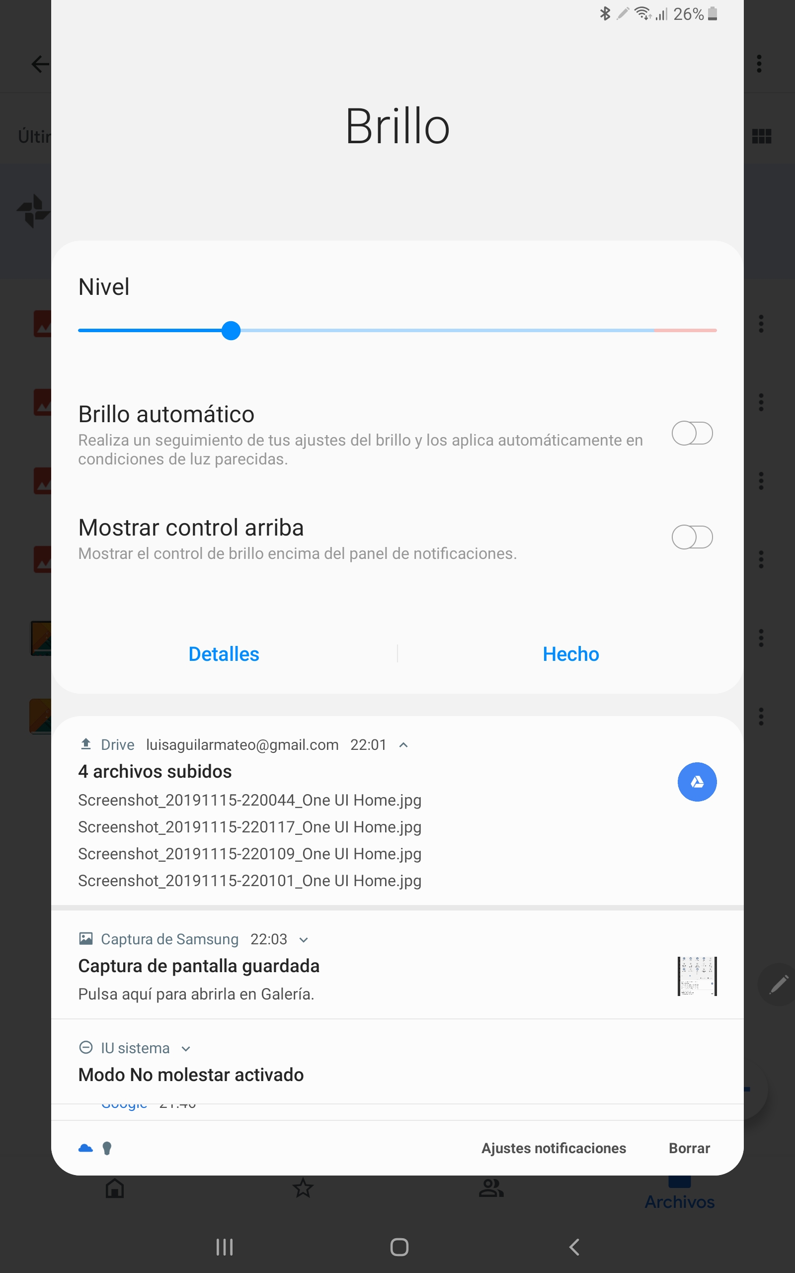 Samsung también ha añadido un modo Noche que activa un modo oscuro en la interfaz y las apps de Samsung. Ahora bien, las apps de terceros no se ven afectadas por este modo, por lo que el resultado no es tan bueno como nos gustaría. Tendremos que esperar a que reciba Android 10 para tener un modo oscuro de verdad.