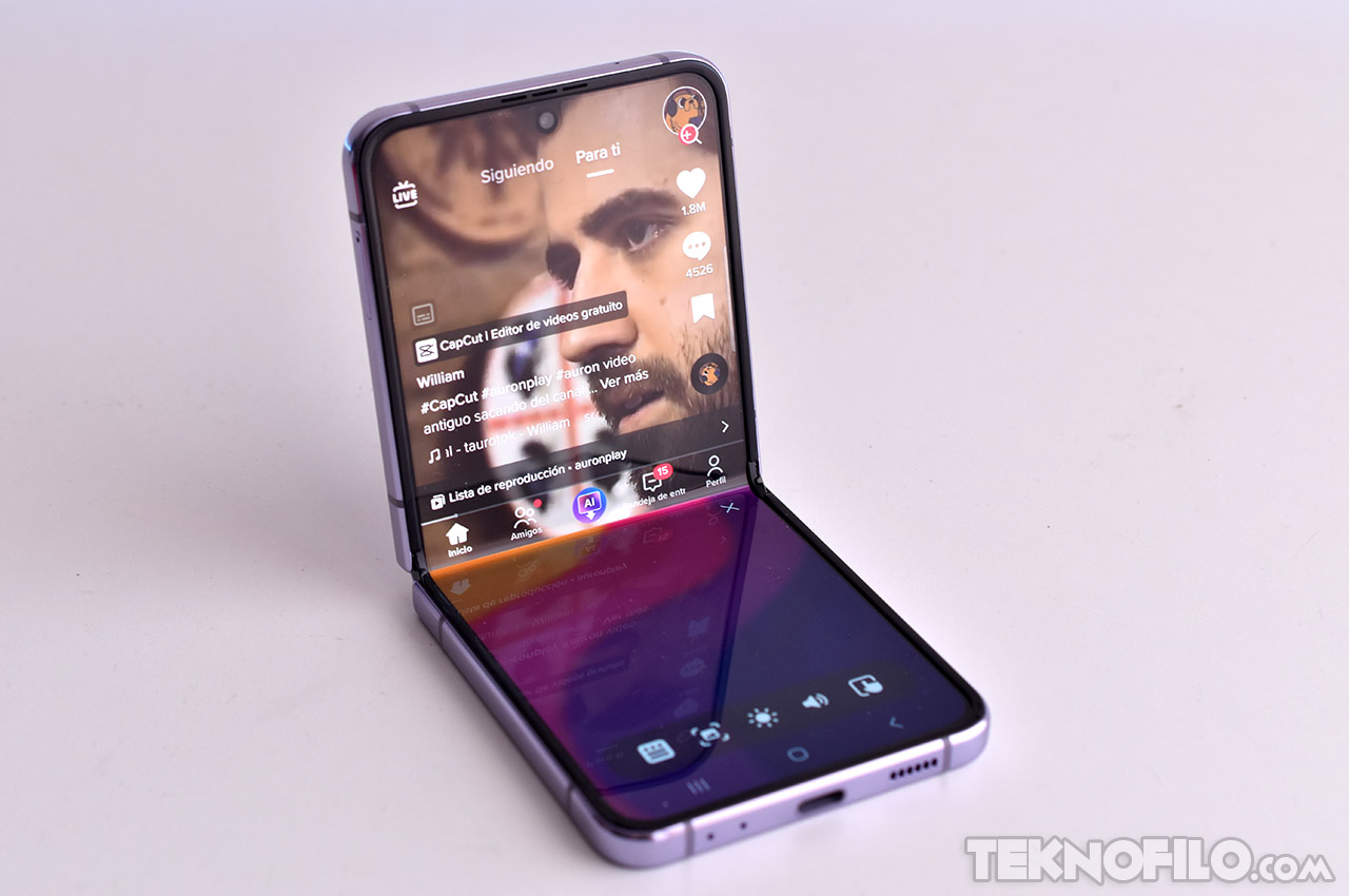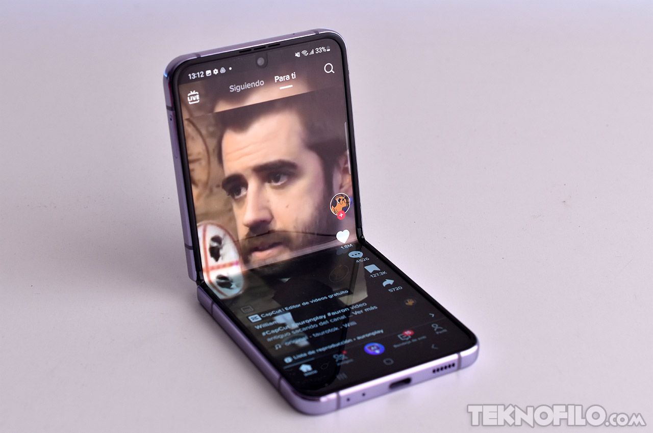 En mi experiencia, el pliegue del centro de la pantalla pasa más desapercibido en los Galaxy Z Flip que en los Galaxy Z Fold. Esto se debe probablemente a que el pliegue es transversal a la pantalla, en lugar de longitudinal, por lo que se ve menos.