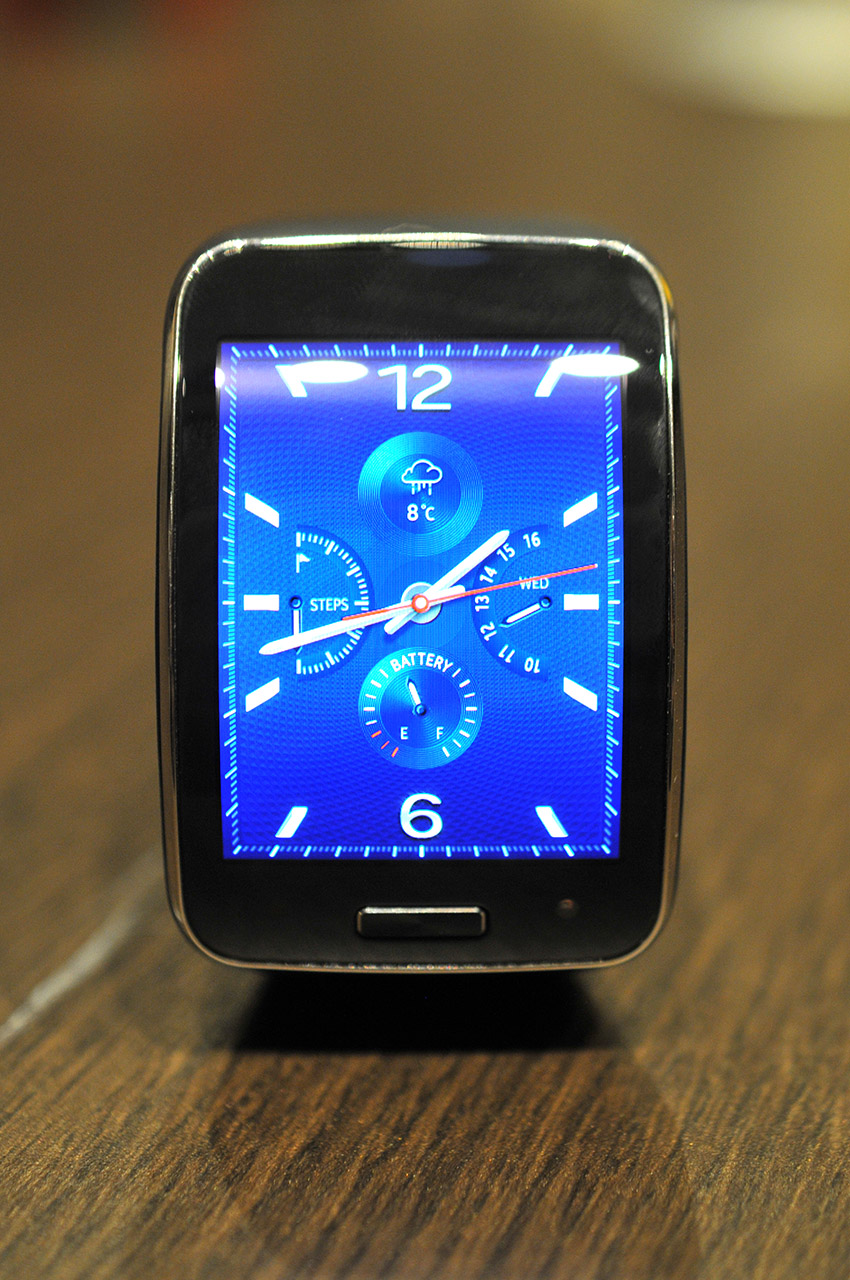 Si nos centramos en el hardware, el Samsung Gear S posee una pantalla curvada Super AMOLED de 2″ con resolución 360 x 480 píxeles, lo que según nuestros cálculos implica una elevada densidad de 300 ppp.