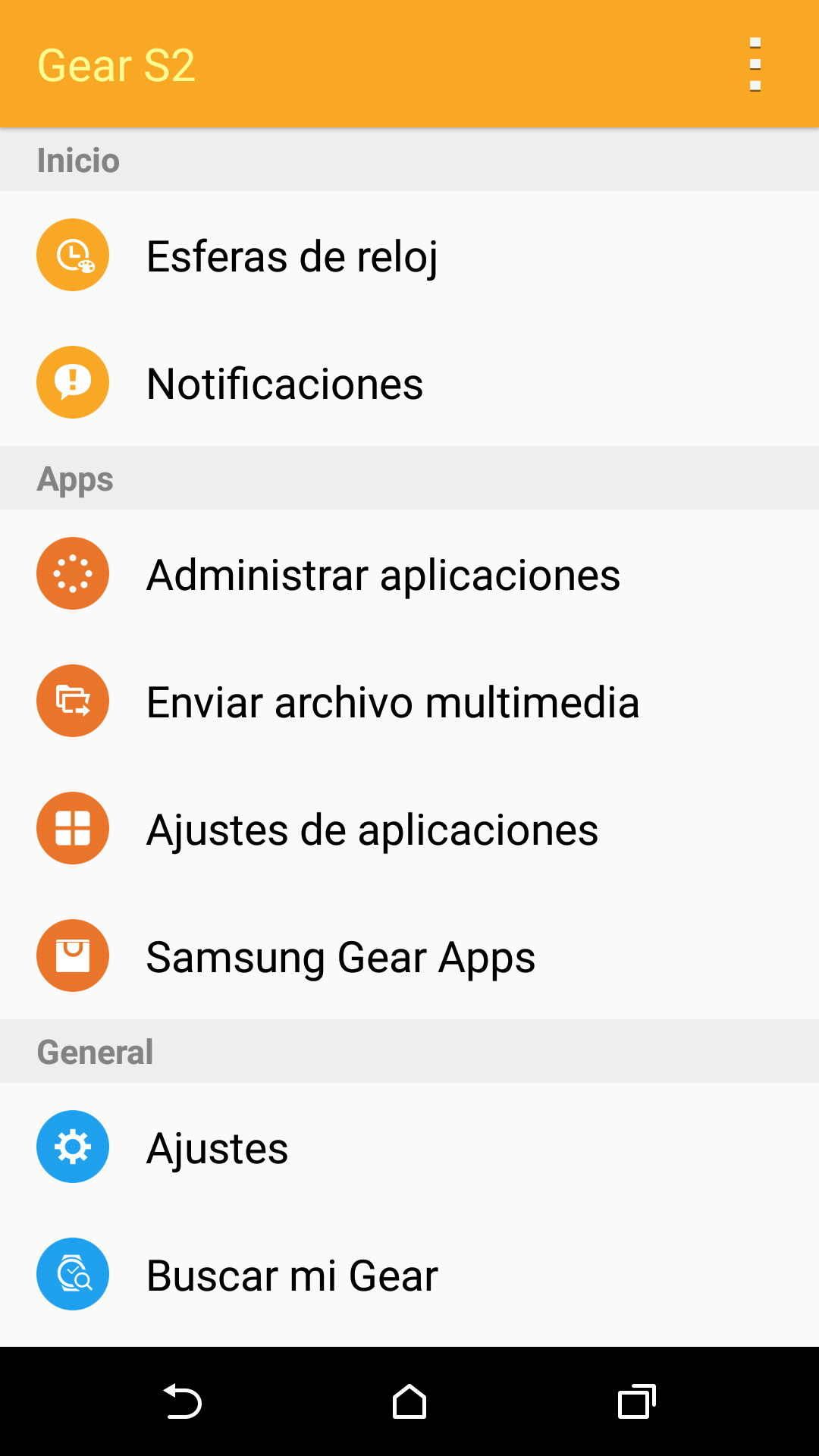 Hablando de aplicaciones, desde Samsung Gear podemos escoger el orden en el que aparecen las aplicaciones en el reloj y configurar los ajustes de algunas de las aplicaciones (por defecto, Amigo, Clima y Notas de Voz).