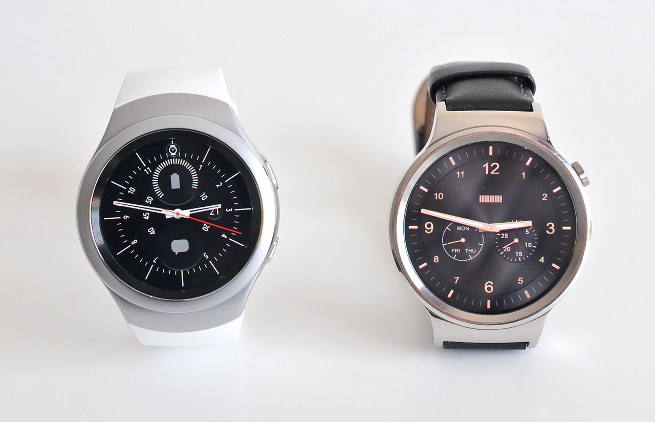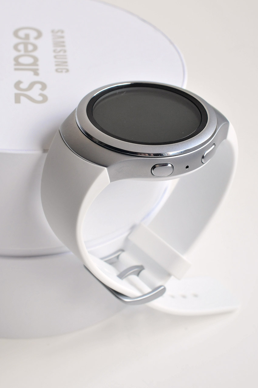 El Samsung Gear S2 posee una esfera circular pero, a diferencia del Huawei Watch, su aspecto se aleja del diseño clásico de los relojes analógicos. El Gear S2 ofrece un aspecto moderno y juvenil, gracias al uso de plástico y una correa de goma.