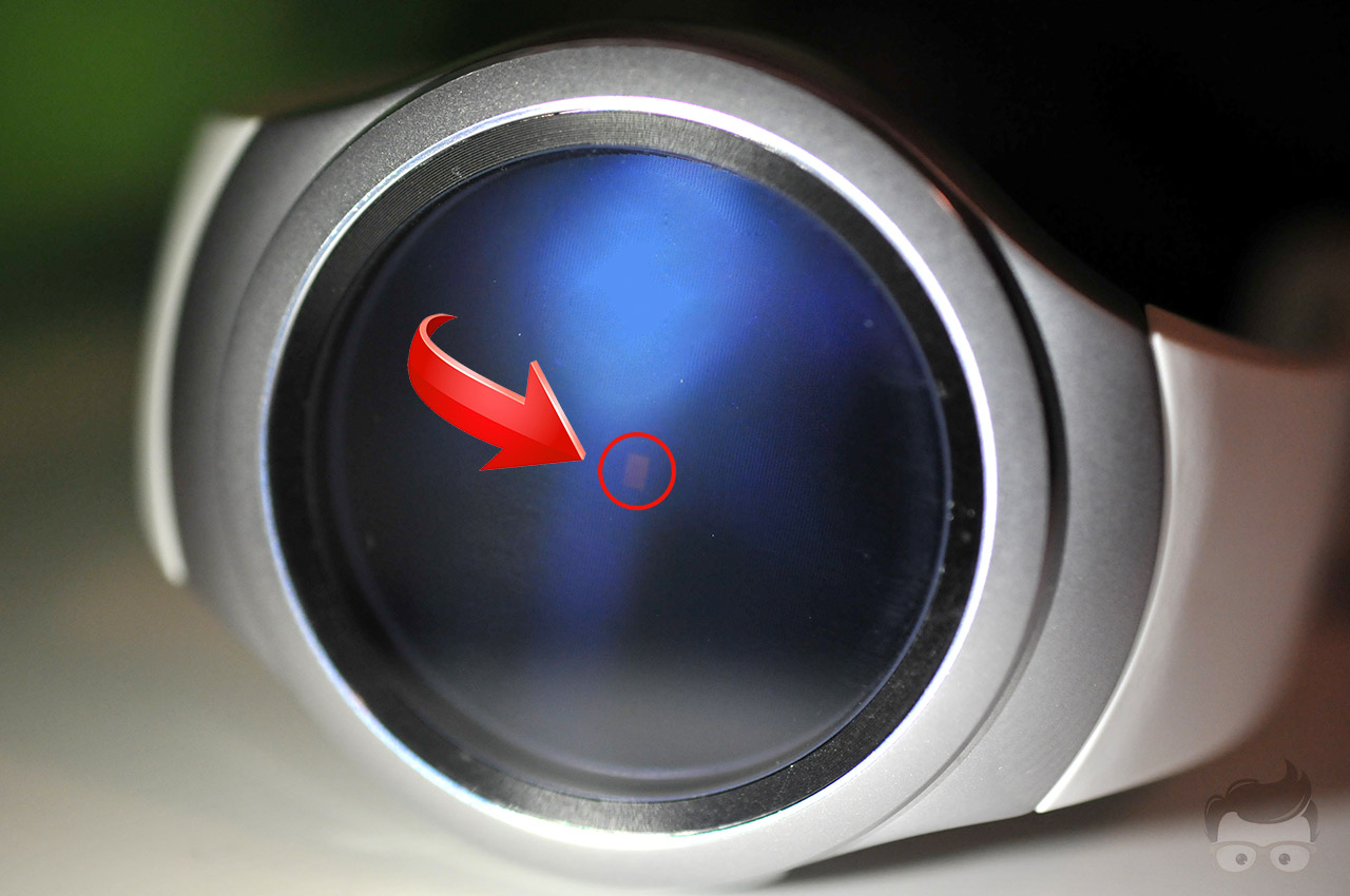 Resulta muy complicado apreciar el sensor a simple vista. Es necesario iluminarlo con una luz brillante y observar la pantalla desde un ángulo. La ubicación del sensor en la pantalla es un avance muy interesante ya que evita sacrificar parte de la superficie de la pantalla, como ha hecho Motorola en el Moto 360.