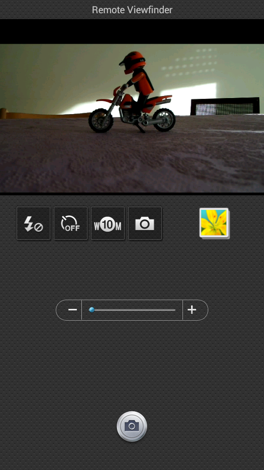 También hemos probado la aplicación de control remoto y nos ha sorprendido de nuevo agradablemente su rapidez de instalación y configuración. Primero descargamos la aplicación Samsung Smart Camera App de Google Play y luego seleccionamos la opción de conexión en la cámara. El teléfono la detectará y procedemos a conectar. El funcionamiento presenta un cierto retardo pero en la práctica es usable.