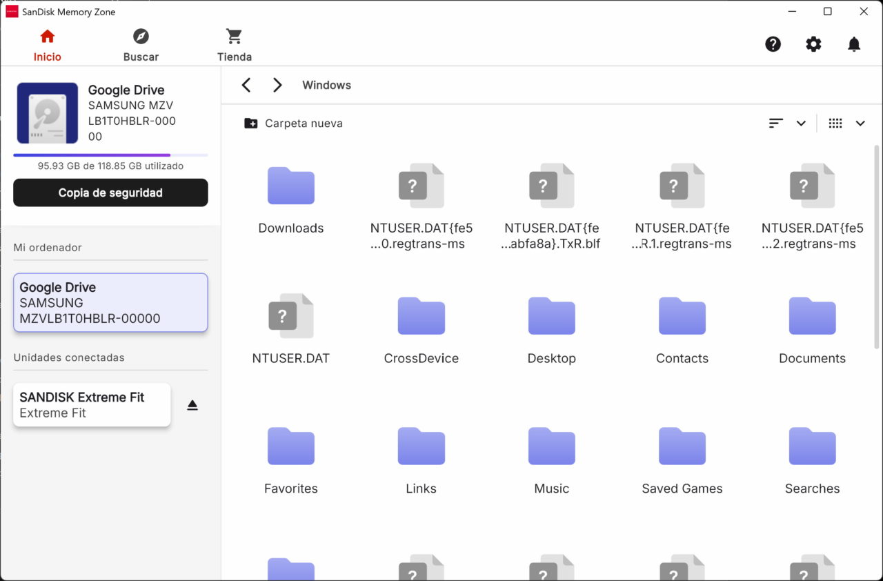 Y si necesitas gestión/backup desde ordenador, la marca ofrece la descarga gratuita de *SanDisk Memory Zone** para Windows y Mac, que permite programar copias de seguridad y restaurar ficheros de manera cómoda.