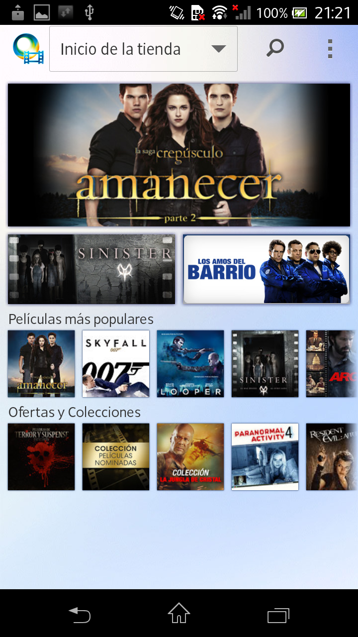 La aplicación Películas es similar a Álbum salvo que está orientada a ficheros de vídeo y que permite acceder al servicio Video Unlimited para comprar o alquilar películas. También es capaz de descargar carátulas e información de las películas, de forma que muestra las películas y series de una forma que resulta muy atractiva visualmente.