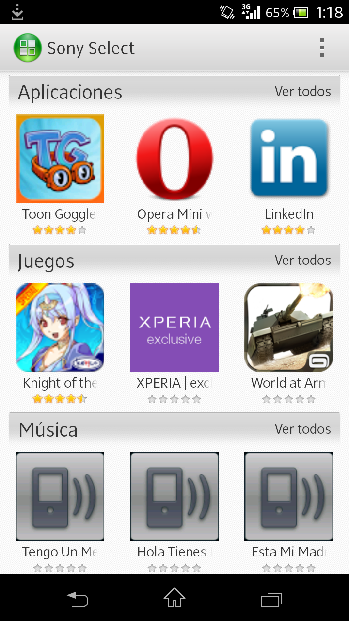 En nuestra opinión Sony Select no aporta nada diferencial y, de hecho, en nuestras pruebas ni siquiera fuimos capaces de averiguar cómo buscar una aplicación en concreto sino que nos vimos obligados a recorrer las interminables listas de aplicaciones destacadas, aplicaciones populares, etc.