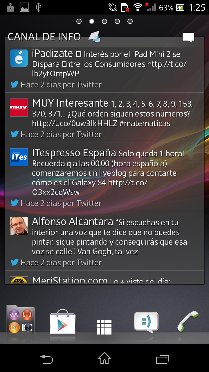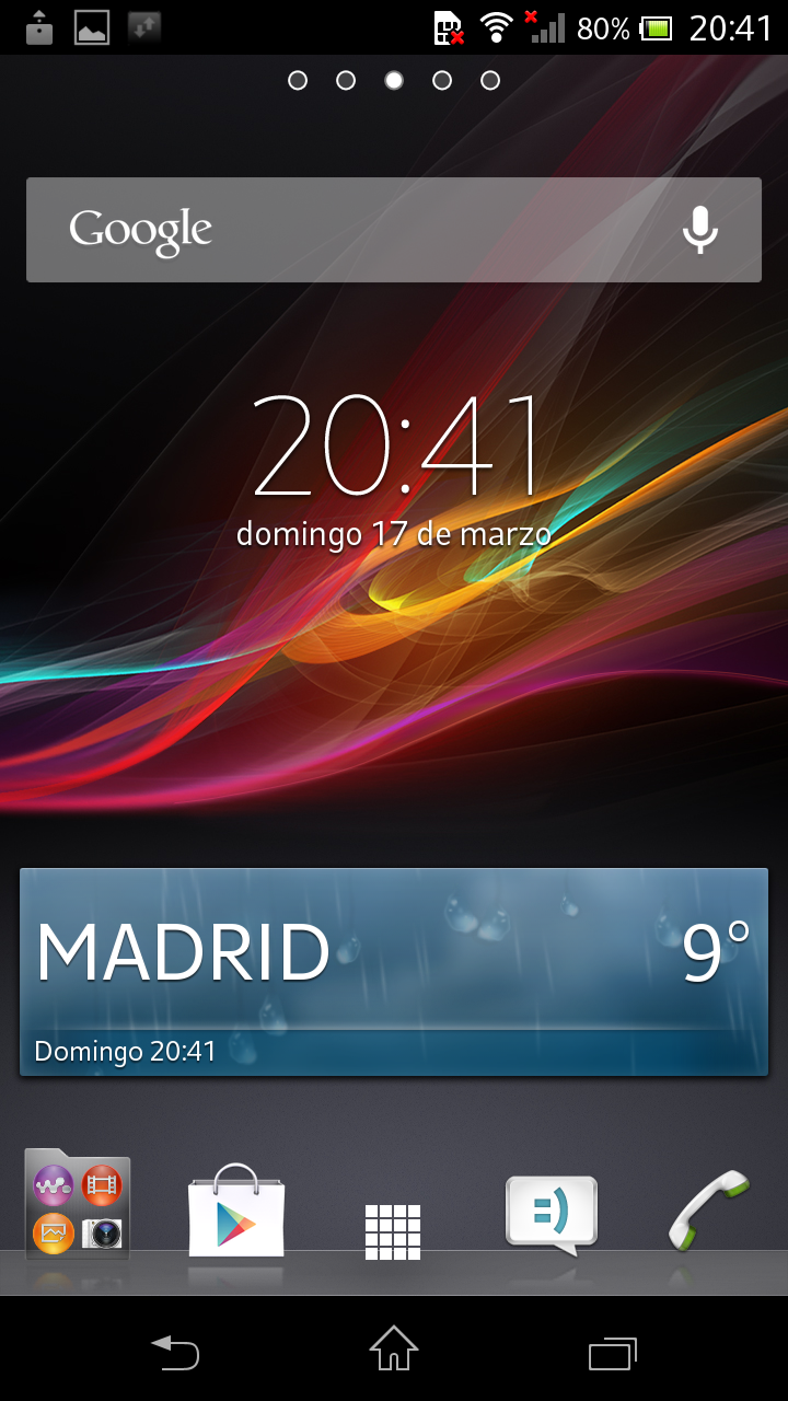 Por defecto viene instalado el tema Skyfall, en alusión a la película de James Bond que sirvió de campaña de marketing para este teléfono. Este tema está basado en tonos de blanco y negro y, en nuestra opinión, resulta algo aburrido por lo que nosotros hemos preferido cambiarlo por otro más colorido como el Xperia. Además, si bien la película tuvo su momento de fama, ahora nos resultaría extraño llevar un teléfono que exhibe una película de hace meses.