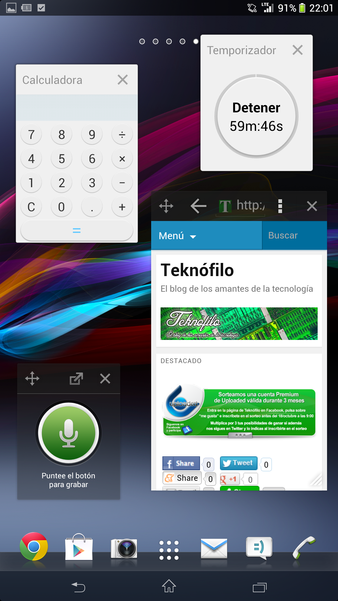 Estas son un conjunto de aplicaciones que, al pulsar sobre ellas, se abren en una ventana flotante que permanece a la vista incluso aunque abramos otras aplicaciones. Por defecto se incluyen varias de estas aplicaciones – Active Clip, Calculadora, Calendario, GMail, Grabadora, Marcadores, Navegador, Notas y Temporizador – pero es posible descargar muchísimas más de Google Play.