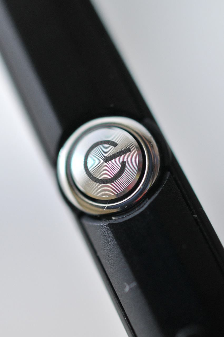 El lateral derecho está ocupado por el conector del auricular, el compartimento para las ranuras de micro-SD y micro-SIM, el botón de encendido y el control de volumen. El botón de encendido es de aluminio y su color plateado contrasta muy bien con el negro del resto del teléfono.