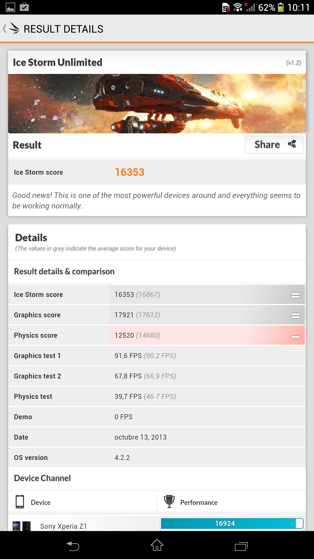 Por último, en el benchmark gráfico 3DMark el Sony Xperia Z Ultra se ha salido ya que los dos primeros tests, Ice Storm y Ice Storm Extreme, eran demasiado sencillos, y el tercer test Ice Storm Unlimited, ha terminado con 16.353 puntos.