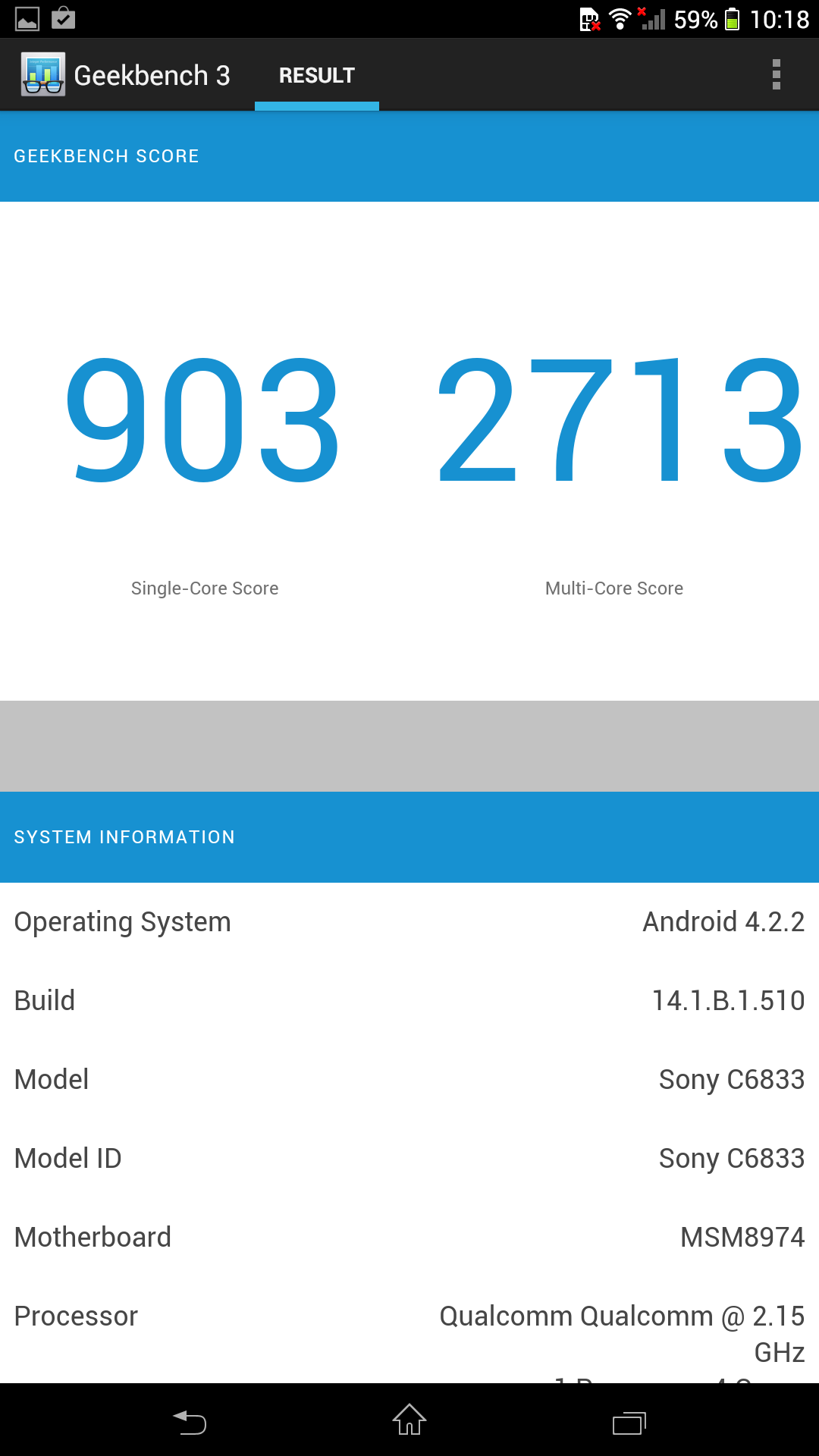 En el benchmark Quadrant, el Sony Xperia Z Ultra obtiene una puntuación de 17.733 puntos, en el benchmark AnTuTu ha dado un resultado de 33.524 puntos, y en el benchmark Geekbench ha conseguido 903/2713 en las pruebas mono/multi-núcleo.