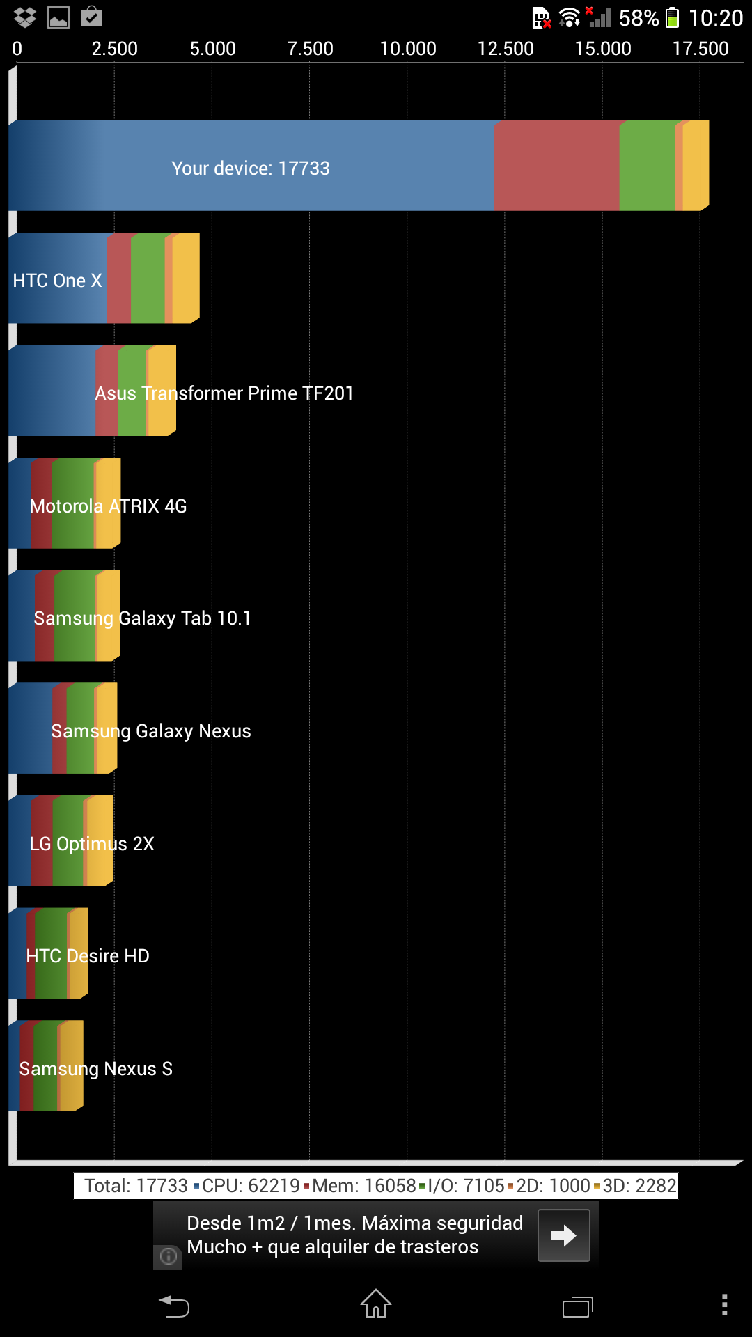 Estos resultados son espectaculares y nos recuerdan a los que obtuvimos al analizar el LG G2, cuyo hardware es similar. En la práctica el teléfono se mueve con gran fluidez, tanto a la hora de movernos por el interfaz como durante la ejecución de aplicaciones exigentes.