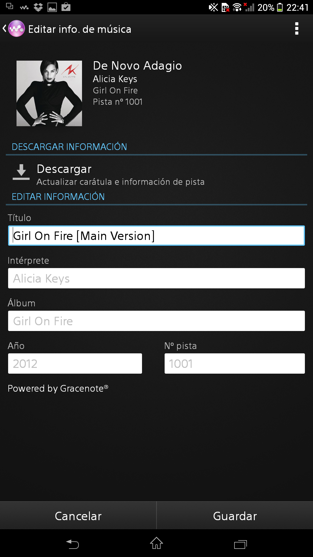 Walkman se conecta a Internet (al servicio Gracenote) para descargar portadas de álbumes e información adicional de las canciones. También permite editar directamente la información del fichero (título, intérprete, álbum, año y número de pista).