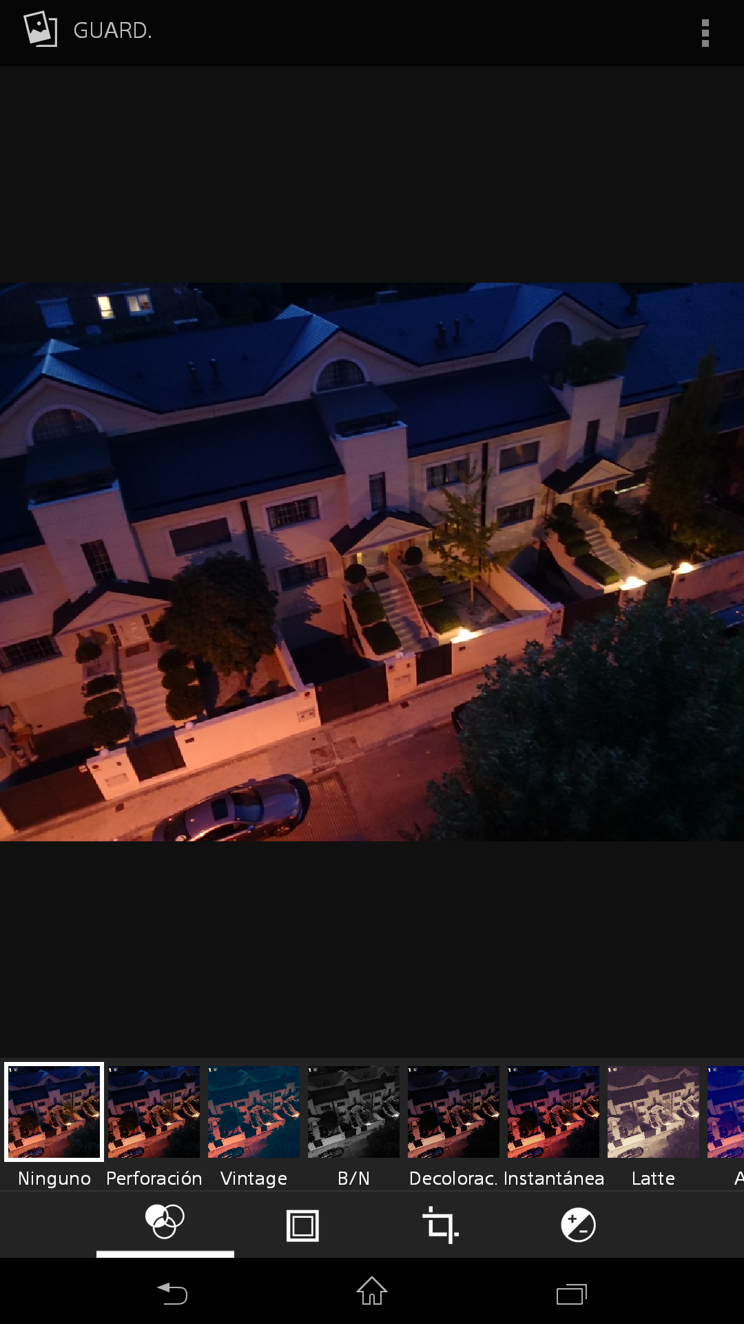 El modo de efecto de imagen permite escoger entre nueve efectos – nostálgico, miniatura, intenso, filtro, ojo de pez, esbozo, color parcial, obturador Harris y caleidoscopio – que se aplican y muestran en la pantalla en tiempo real sobre la imagen que captura la cámara.