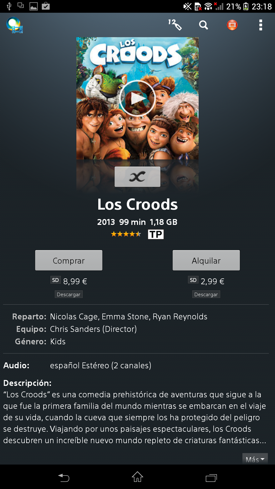 La aplicación Películas es similar a Álbum salvo que está orientada a ficheros de vídeo y es capaz de descargar carátulas e información de las películas de Internet, de forma que muestra las películas y series de una forma que resulta muy atractiva visualmente.