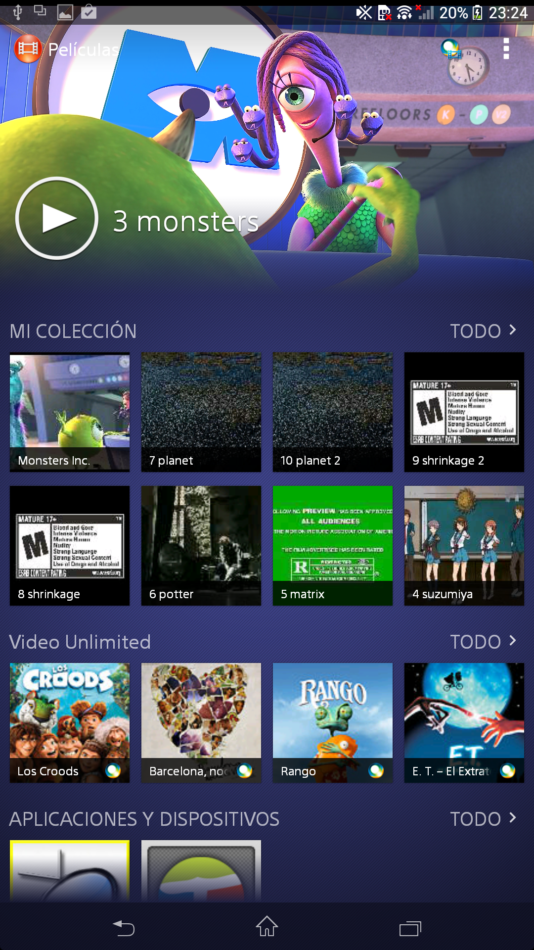 Se integra con el servicio Video Unlimited, que permite alquilar y comprar películas para visionarlas en el teléfono.