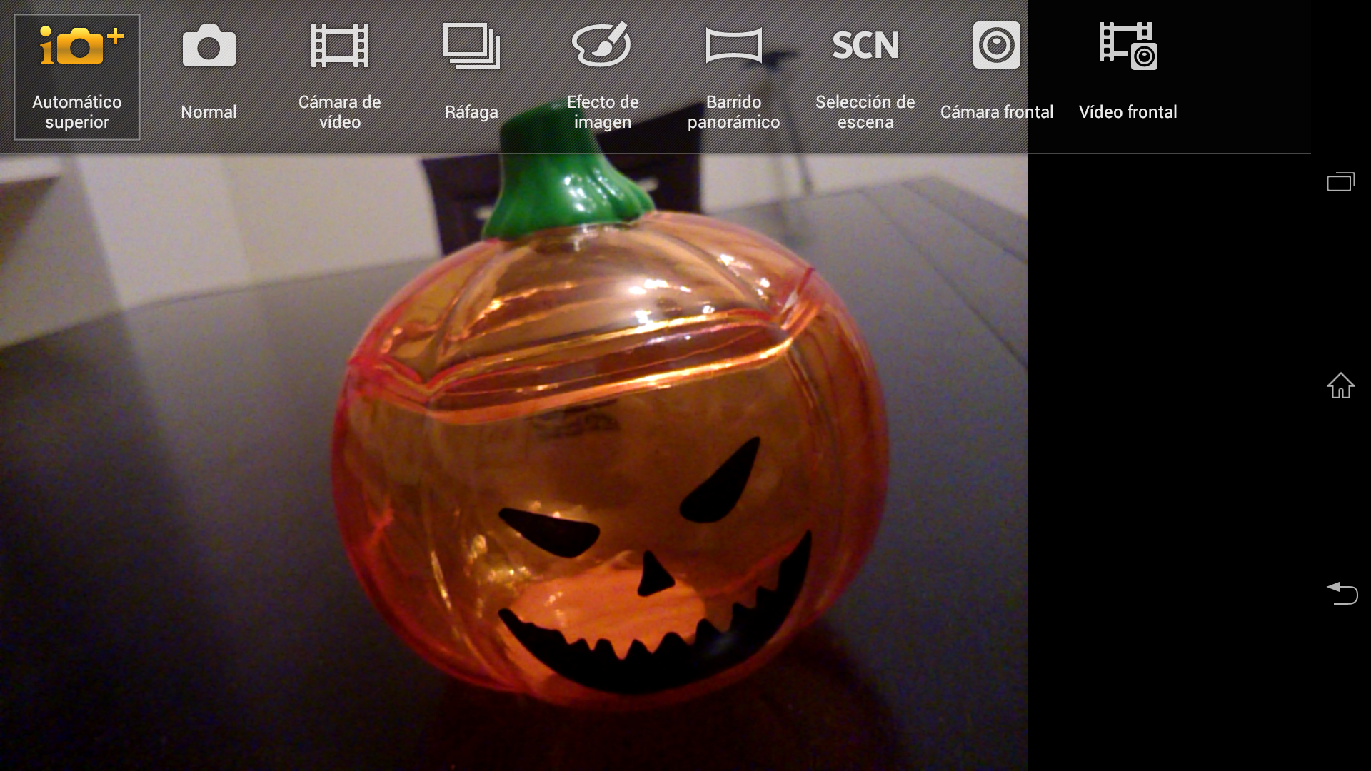 El Sony Xperia Z Ultra permite escoger diversos modos: Automático superior (desconocemos por qué no se llama simplemente automático), normal, cámara de vídeo, ráfaga, efecto de imagen, barrido panorámico, selección escena, cámara frontal y barrido frontal.
