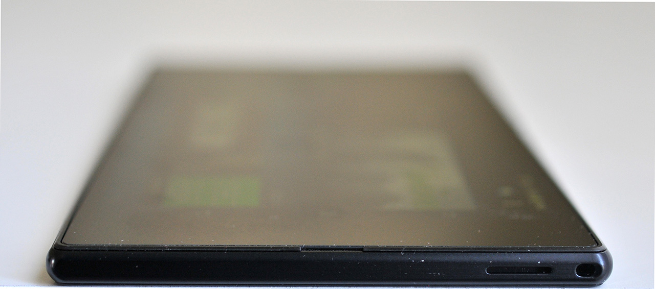 Tanto la superficie delantera como la trasera están recubiertas por cristal templado, más resistente que el cristal convencional, y una capa de protección anti rotura que no es Gorilla Glass. La presencia de cristal a ambos lados confiere al teléfono un aspecto reflectante independientemente de sobre qué lado lo apoyemos. Los laterales son de aluminio y, aunque son menos estéticos que en el Sony Xperia Z, se clavan menos en las manos al agarrarlo con firmeza.