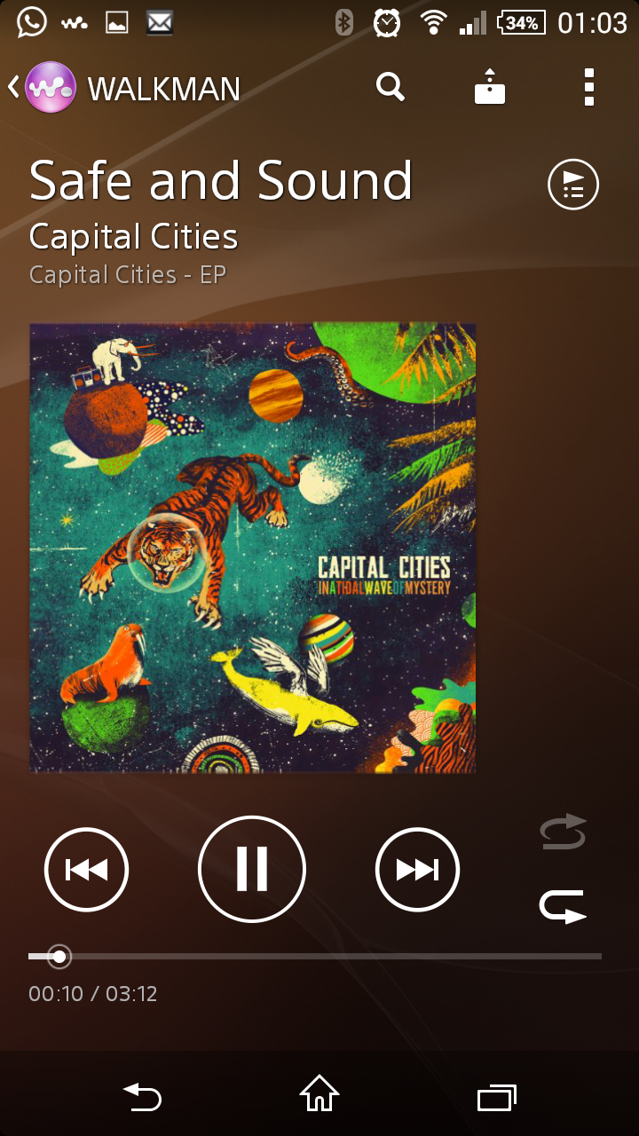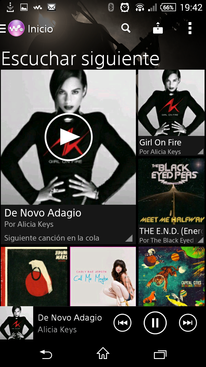 La aplicación Walkman reproduce canciones almacenadas en el teléfono y procedentes de servidores multimedia conectados a la misma red Wi-Fi.