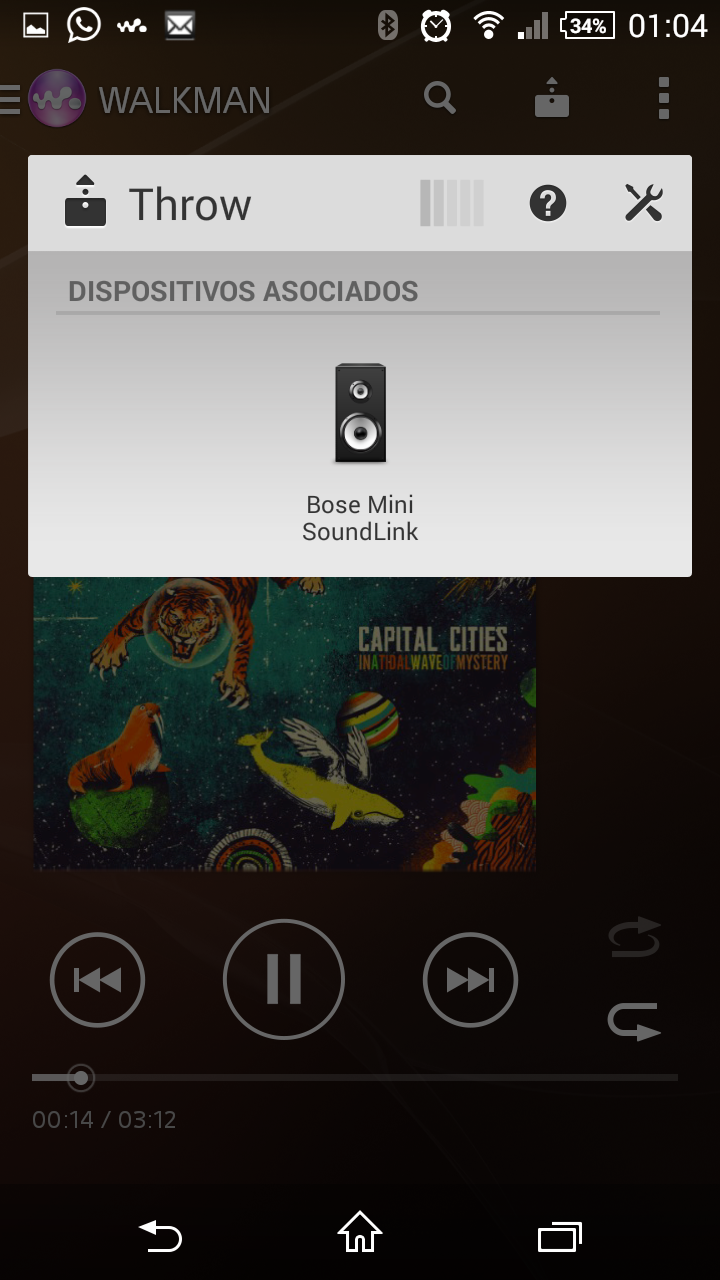 Una funcionalidad que encontramos en las aplicaciones de Sony de reproducción de música y vídeo es el botón Throw, que permite reproducir cualquier contenido multimedia del teléfono en un dispositivo compatible.