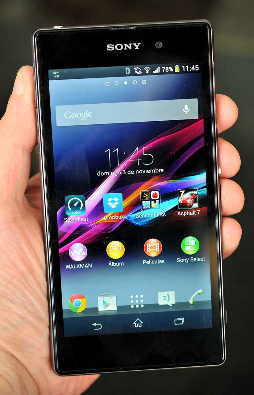 En este aspecto nos ha sorprendido comprobar que sus dimensiones y peso han aumentado con respecto al Sony Xperia Z, a pesar de que el tamaño de pantalla no ha crecido.