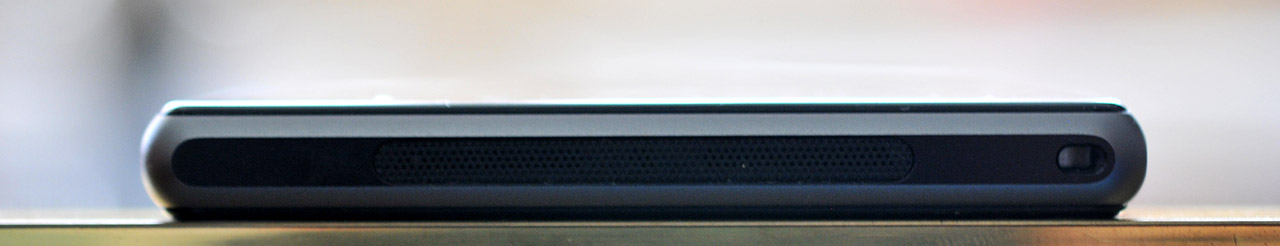 La parte inferior del teléfono posee el altavoz principal y un micrófono. La posición del altavoz no es la mejor ya que al utilizar el teléfono en modo horizontal es fácil taparlo sin darse cuenta.