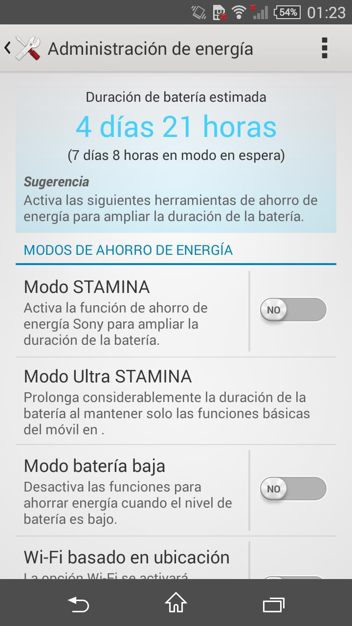El modo Stamina también permite restringir el rendimiento del dispositivo, pero esto hace que los tiempos de carga de aplicaciones sean notablemente más lentos y que los juegos no vayan tan suaves, por lo que no es recomendable si quieres utilizar aplicaciones o juegos exigentes.