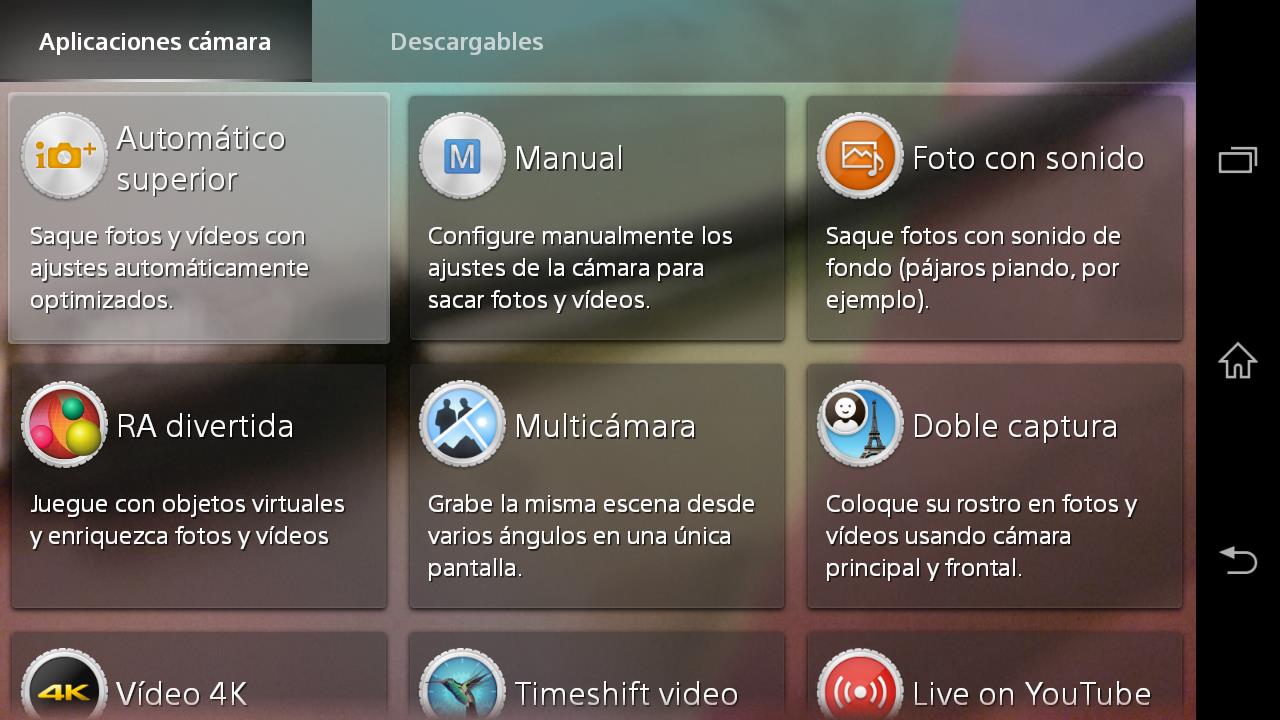 Existe un acceso directo que nos permite añadir nuevos modos, que son descargados de la tienda de aplicaciones Sony Select.