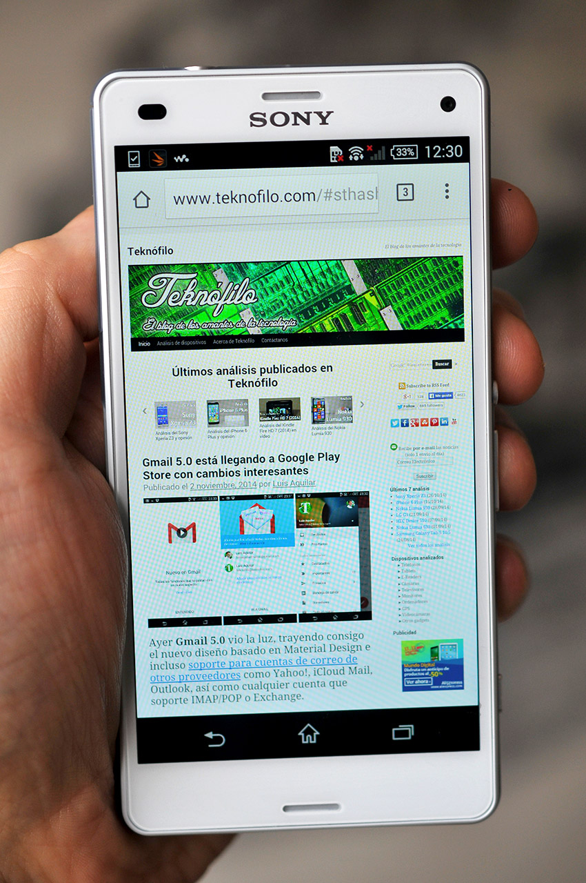 Afortunadamente el Sony Xperia Z3 Compact ha heredado el magnífico panel del Sony Xperia Z3 y la pantalla ofrece unos buenos ángulos de visión y una buena reproducción de los colores.