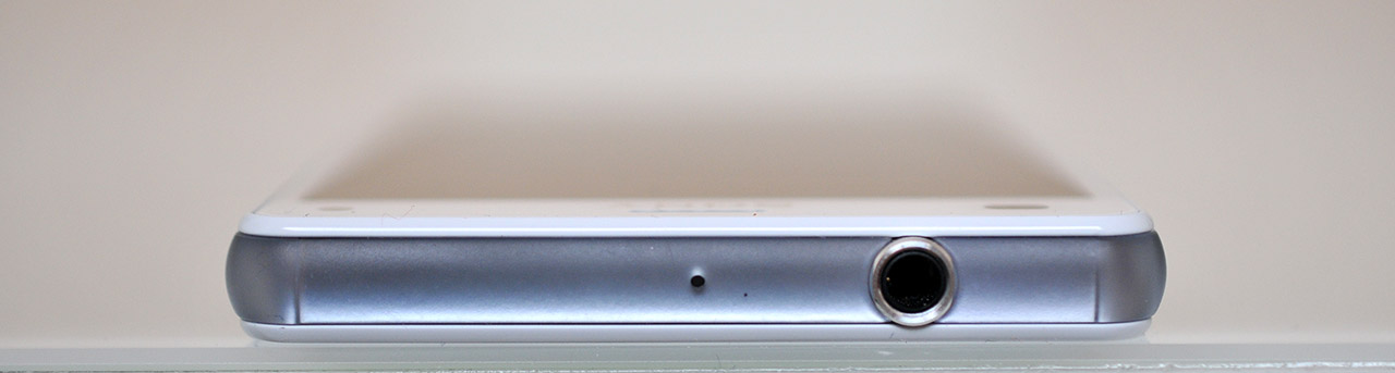 La parte superior del teléfono únicamente cuenta con el conector de auriculares, que no está tapado ya que está aislado internamente frente a agua y polvo.