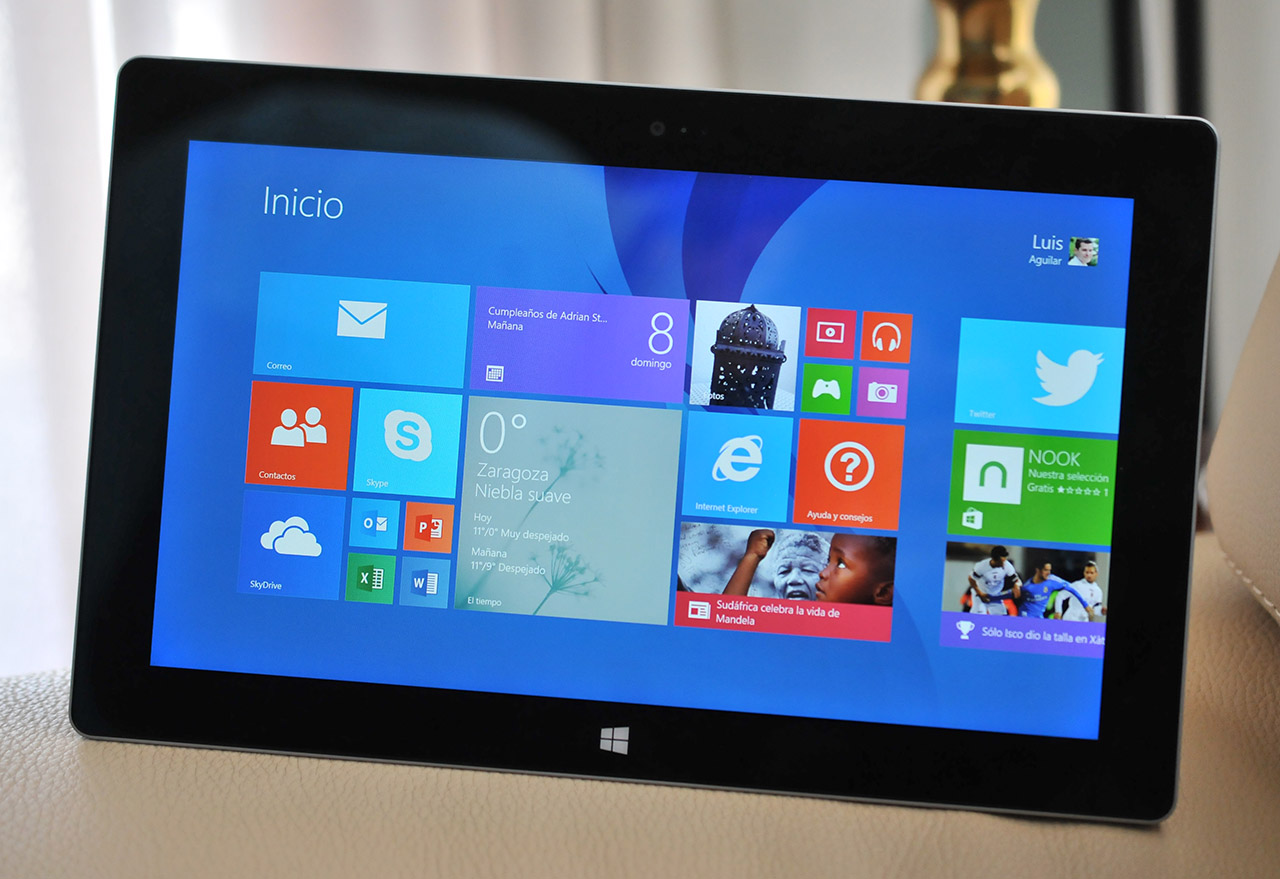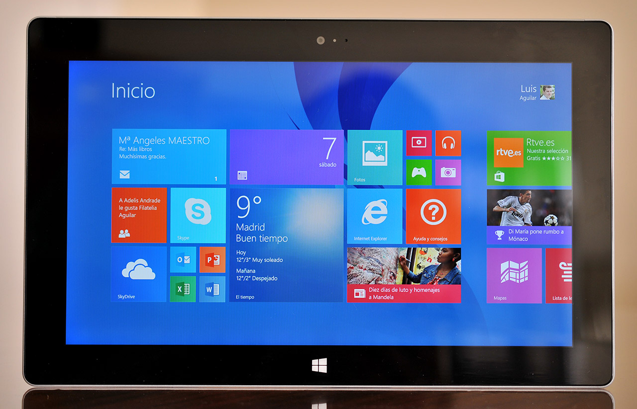 Como ya comentamos en su día, la apariencia de Windows RT es prácticamente la misma que Windows 8 e incluso podemos acceder al escritorio tradicional de Windows. Dado que Windows 8 y Windows RT no admiten personalizaciones tan fuertes como Android, la apariencia del interfaz de todos los tablets que corren estos sistemas operativos es prácticamente el mismo.