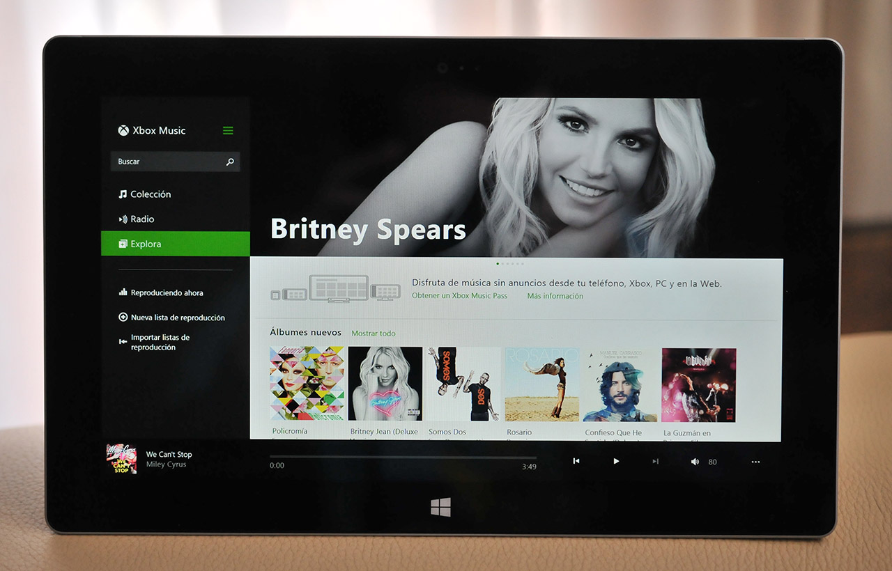 El apartado ‘Radio’ permite introducir un intérprete y Xbox Music reproduce música similar en streaming. Al pulsar sobre última opción con cierta frecuencia se escucha publicidad. Aunque Xbox Music nunca muestra anuncios al reproducir ficheros MP3 comprados o que estén en el tablet, sí que lo hace cuando reproducimos música en streaming a no ser que contratemos el Xbox Music Pass, que además trae otras ventajas.