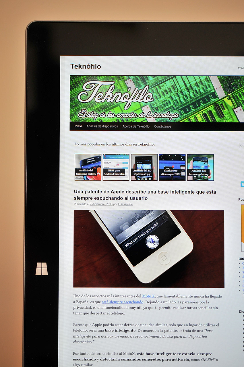 A la hora de navegar, el Surface 2 se comporta bien incluso al abrir páginas web complejas como TheVerge.com. Al hacer zoom el tablet redibuja las fuentes de forma prácticamente instantánea.