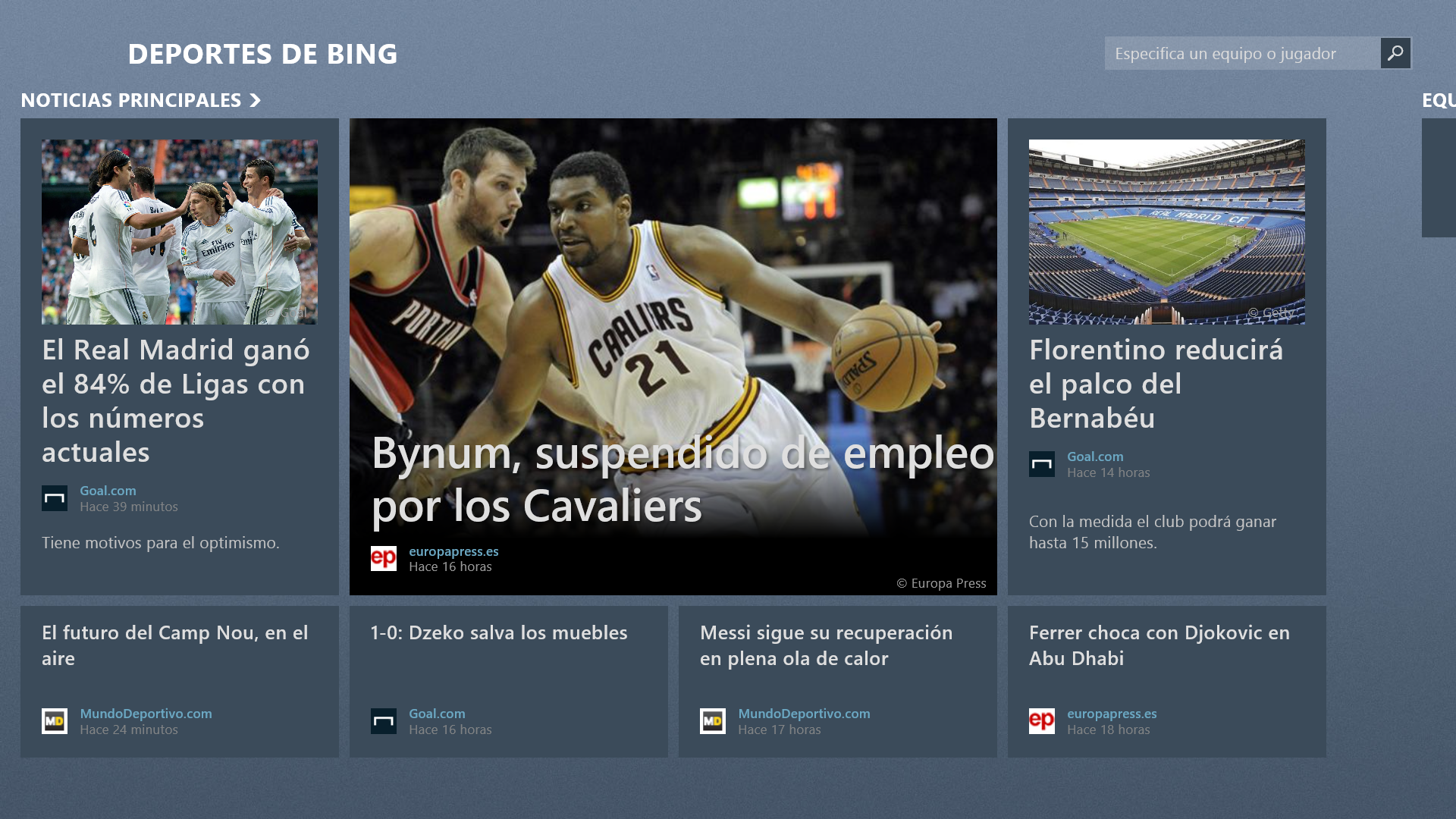 Los amantes de los deportes están de suerte ya que la aplicación Deportes ofrece noticias deportivas en general, información sobre un equipo en concreto, noticias sobre un deporte en particular (La Liga, Formula 1, MotoGP, PGA, NBA, etc.), próximos partidos, vídeos, etc.
