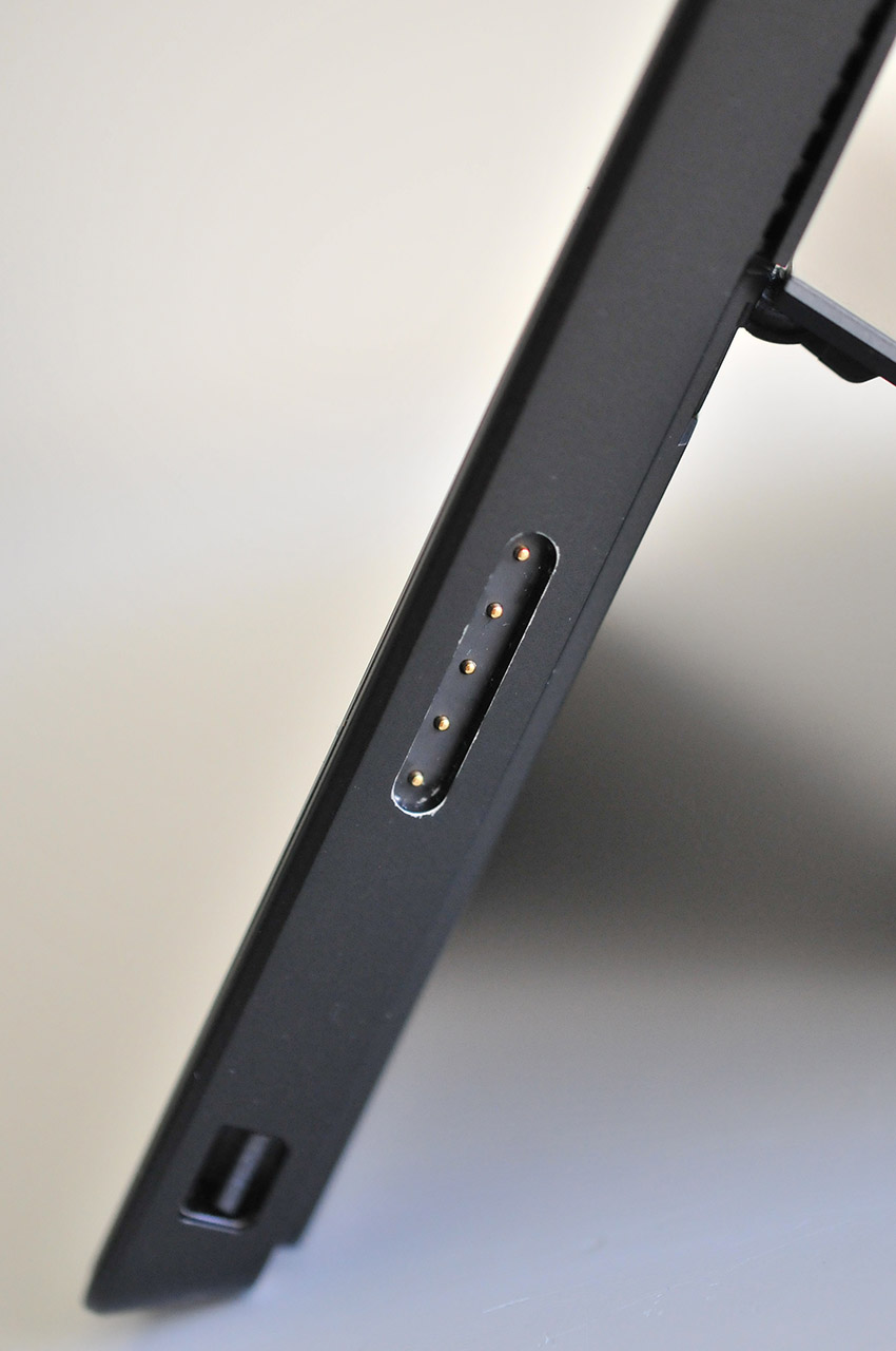 El conector de alimentación se utiliza también para acoplar el lápiz, aunque tiende a caerse con facilidad por lo que sería más útil que Microsoft hiciese un hueco en el chasis para insertarlo y no perderlo.