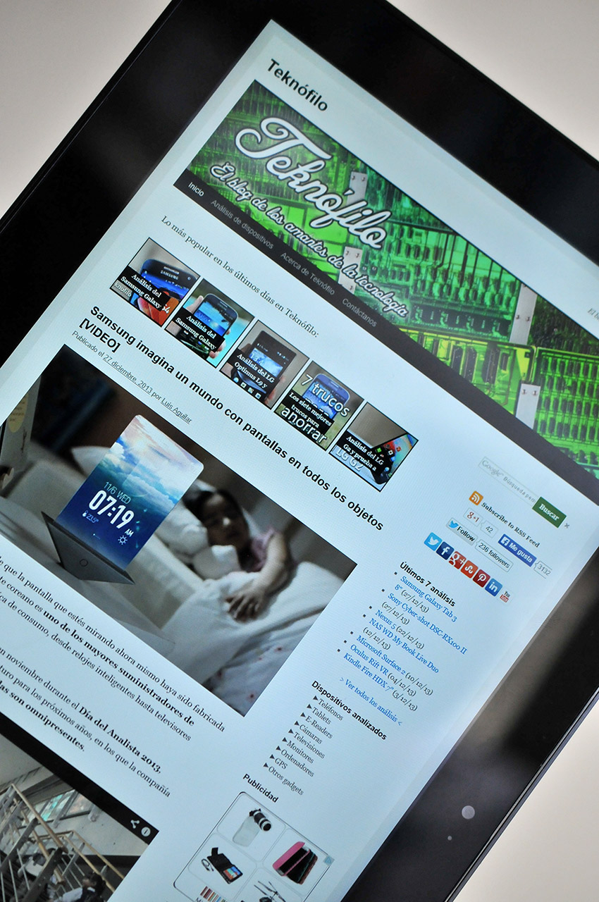 La densidad de píxeles es elevada ya que alcanza los 208 ppp, lo que hace que los textos pequeños y los elementos del interfaz se vean nítidos. Aún con todo nos encontramos algo por debajo de otros competidores como el Sony Xperia Tablet Z con 224 ppp, Google Nexus 10 con 229 ppp e iPad con 264 ppp, por citar algunos.
