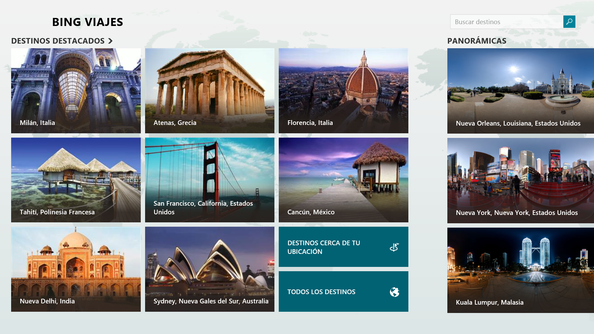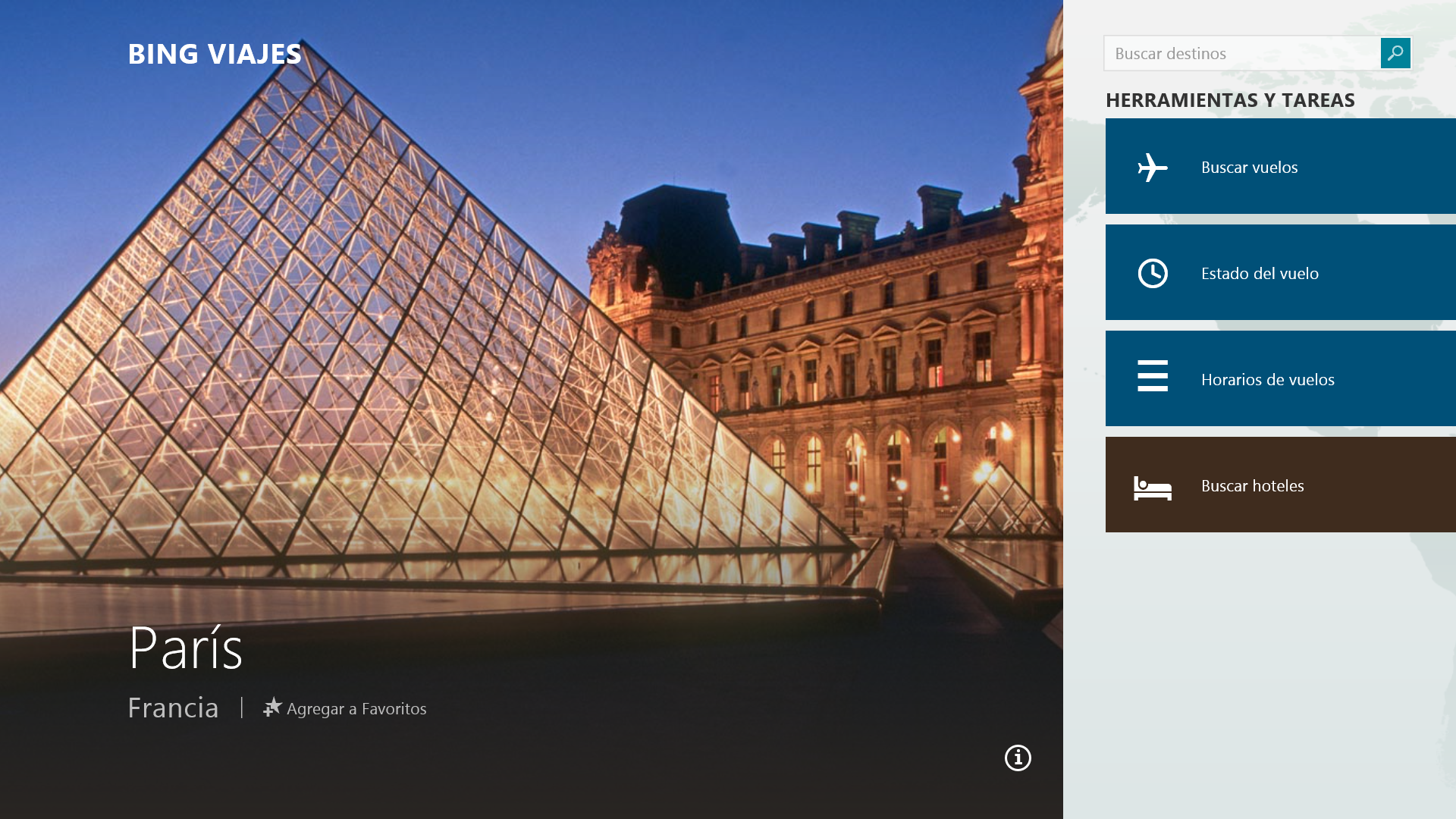 La aplicación Viajes permite explorar destinos turísticos y acceder a mucha información sobre ellos: datos de interés, moneda, previsión del tiempo, fotografías, lista de atracciones turísticas (según Fodor’s, Frommer’s, Loney Planet y TripAdvisor), hoteles, restaurantes y destinos cercanos. Desde la propia aplicación es posible leer noticias sobre turismo y buscar hoteles y vuelos.