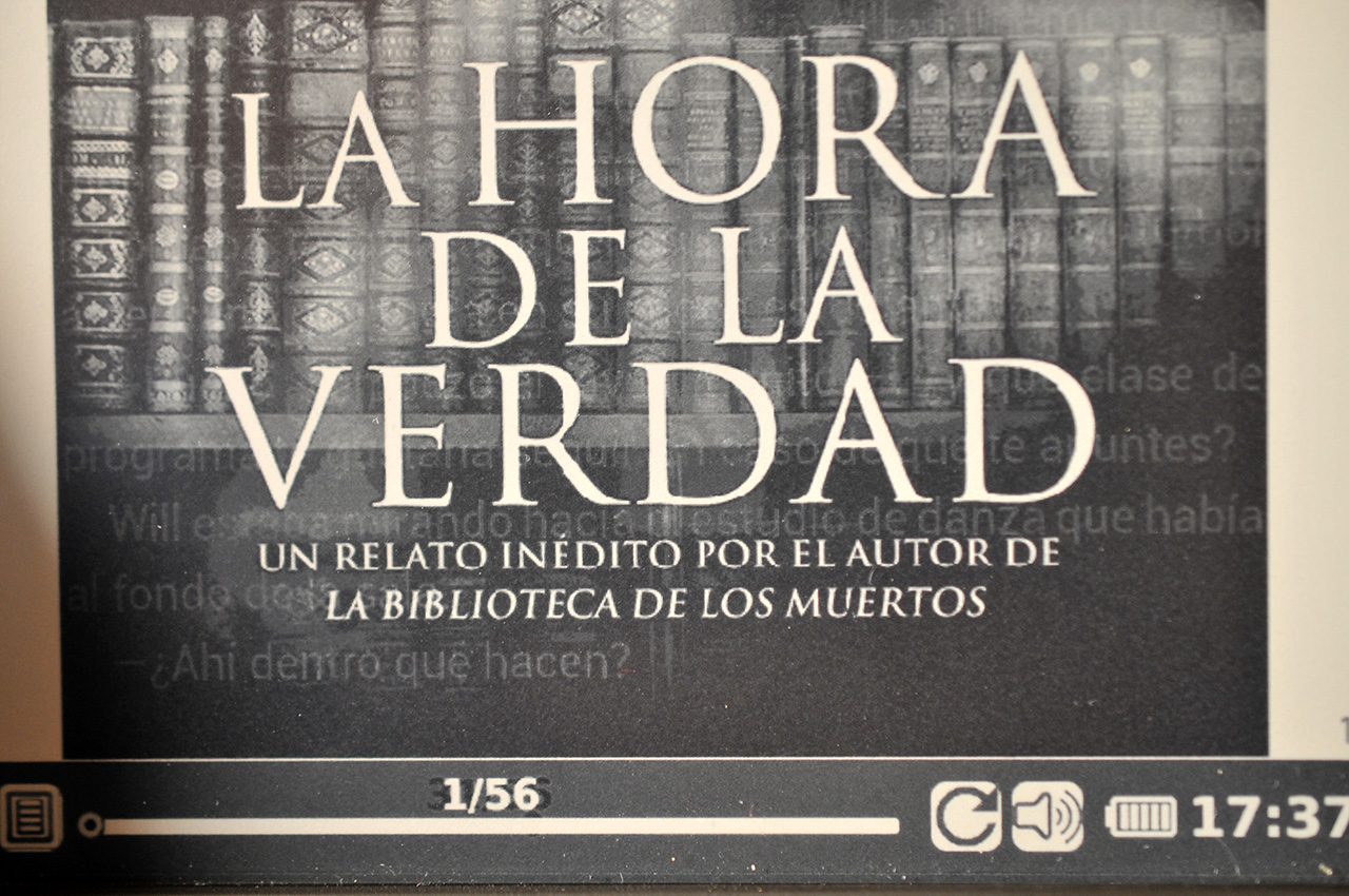 Esto lo consigue mediante 5 LEDs colocados en el marco superior de la pantalla, y que iluminan desde allí toda la pantalla de forma basta uniforme, excepto la primera línea de cada página donde se aprecian algunas sombras. En el caso del Kindle Paperwhite estos LEDs están colocados en la parte inferior, pero en la práctica no hemos notado ninguna diferencia apreciable entre uno u otro sistema.